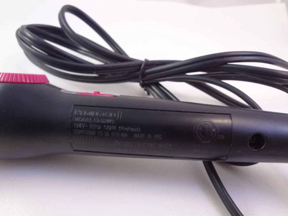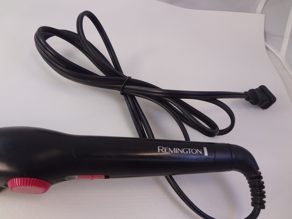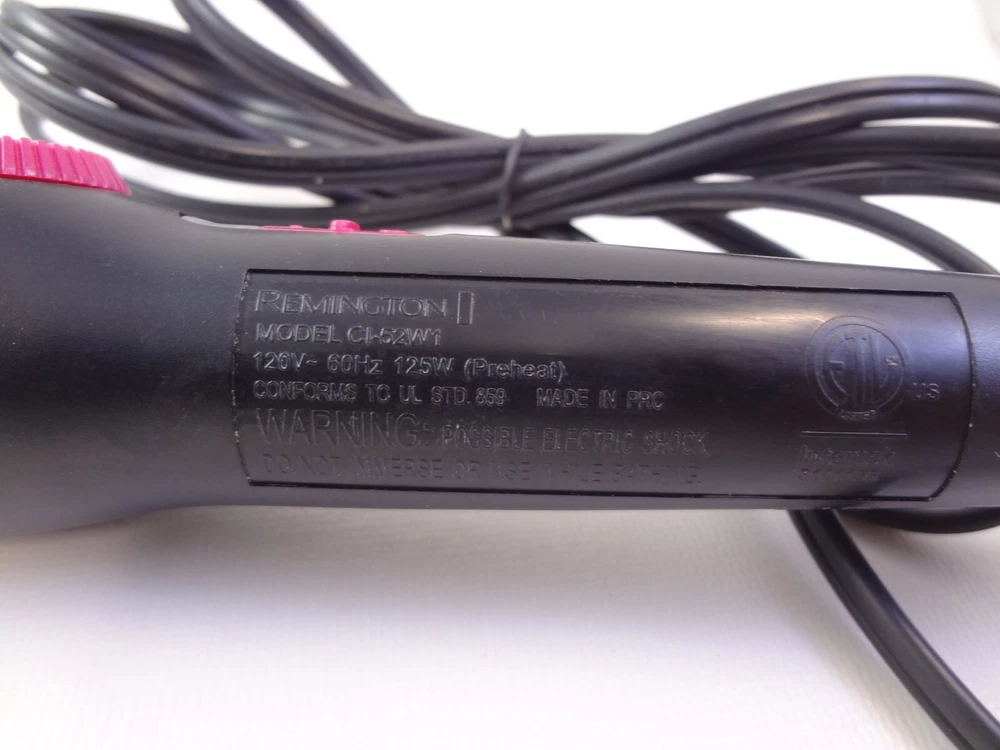 *** Very Clean And In Good Condition *** Remington 1/2" - 1" Ceramic Technology Tapered Wand Curling Iron ~ Black & Silver With Pink Accents ~ Swivel Cord 30-Heat Settings Dial ~ On/Off Switch Model: CI-52W1 ~ Gently Used, Excellent Condition ~ Works Great! This item has been cleaned & disinfected!