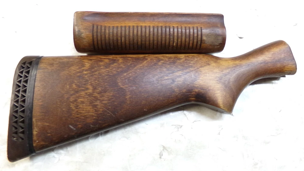Used Remington 870 12 gauge stock set for military or police use shotguns. Marked #9 on the pistol grip. Has some scratches and contains the buttstock screw.