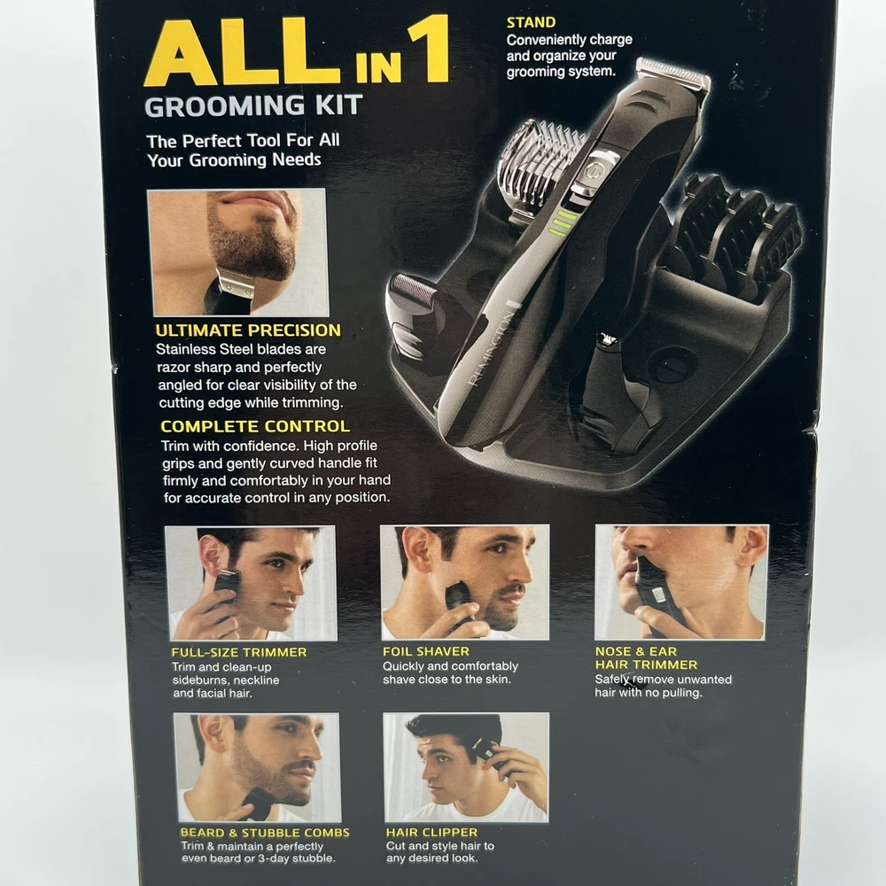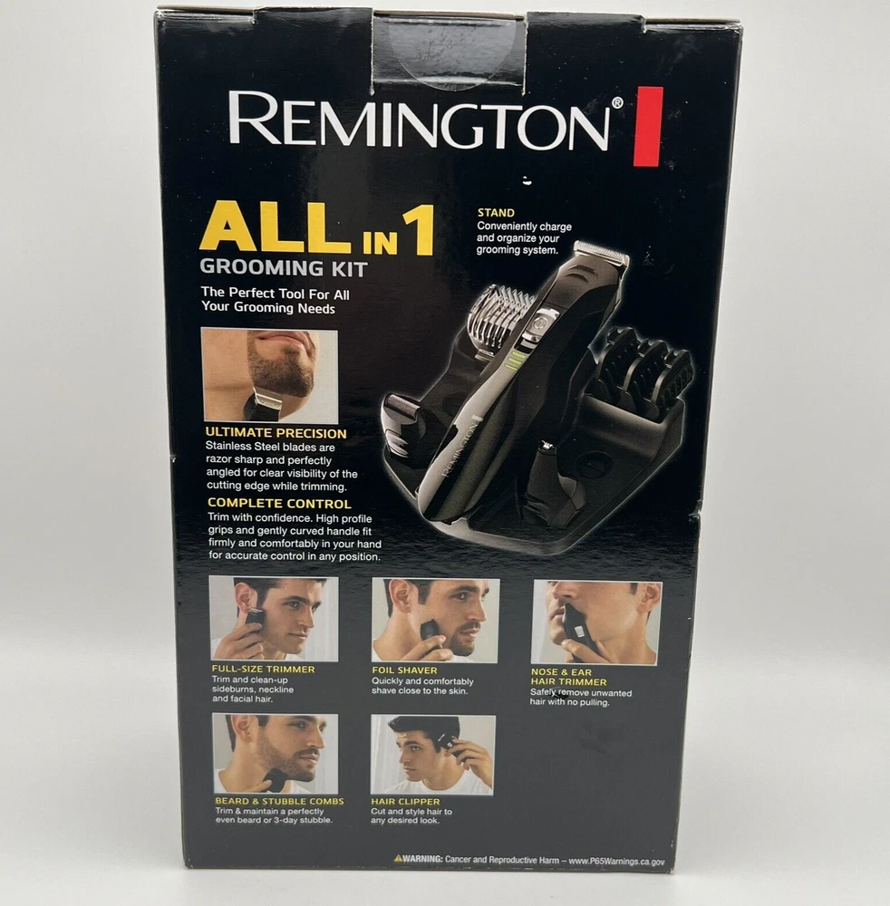 REMINGTON All in 1 Grooming Kit Model # PG-6017 9 Pieces Rechargeable 30 Minutes of Cordless Use Stainless Steel and Self-Sharpening Blades Full-Size Trimmer, Foil Shaver, Nose & Hair Trimmer, Beard and Stubble Combs, Hair Clipper New in Package Shipping USPS is the service used for shipping. We ship to all 50 states and APO addresses. International Buyers Import duties, taxes, and charges (typically collected upon delivery or pickup) are the buyer's responsibility and are not included in the item price or shipping charges. Please check with your country's customs office prior to bidding/buying to determine what these additional cost will be. Terms If you have any questions or need information, please feel free to email us via the link above. Please don't forget to check out all my auctions. Good Luck!