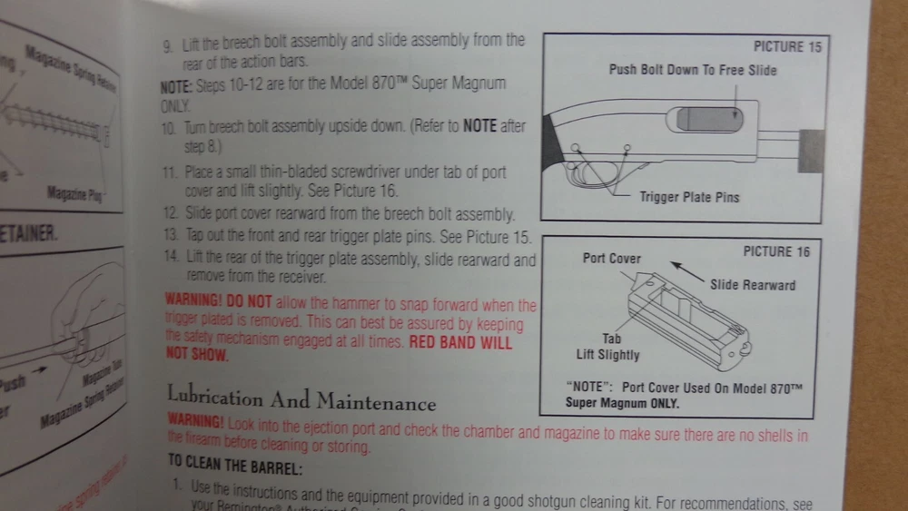 Remington Model 870 & 870 Super Magnum Owners Manual Only 8.5 X 5.5" - Contains 19 pages for a Remington model 870 and 870 super magnum operation manual only. 8.5 X 5.5" - Contains 19 pages. good condition - SHOWS SOME WEAR AND USE