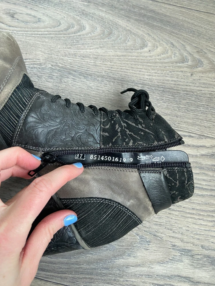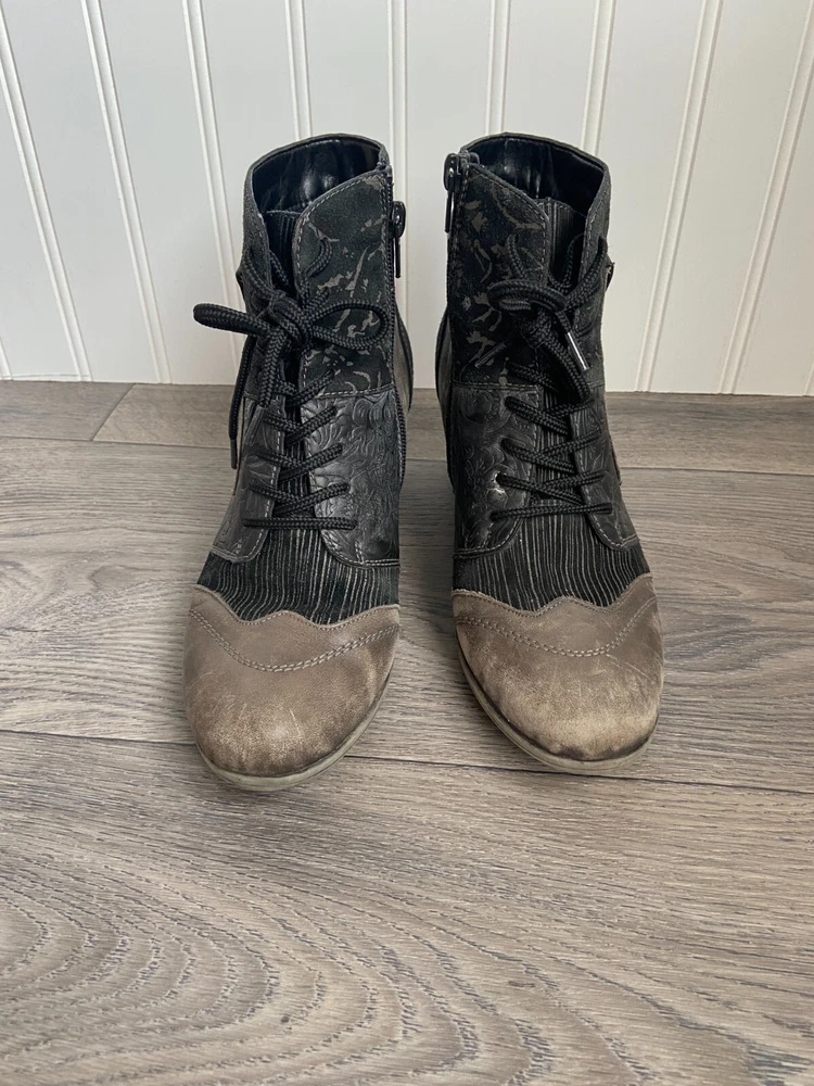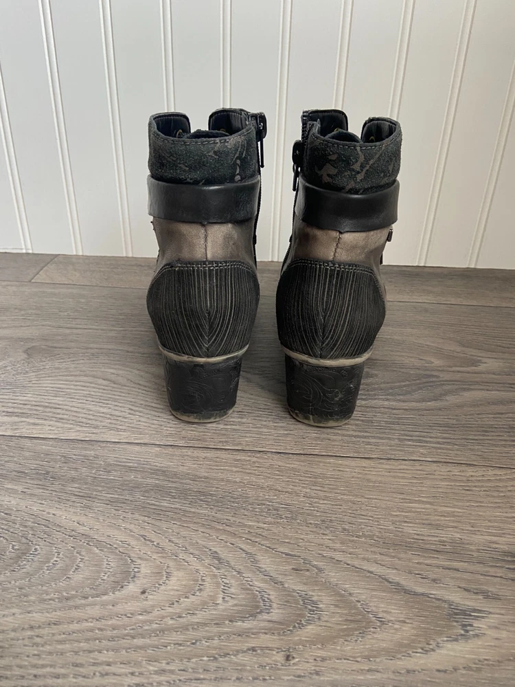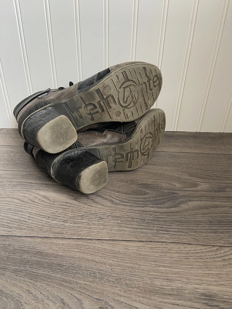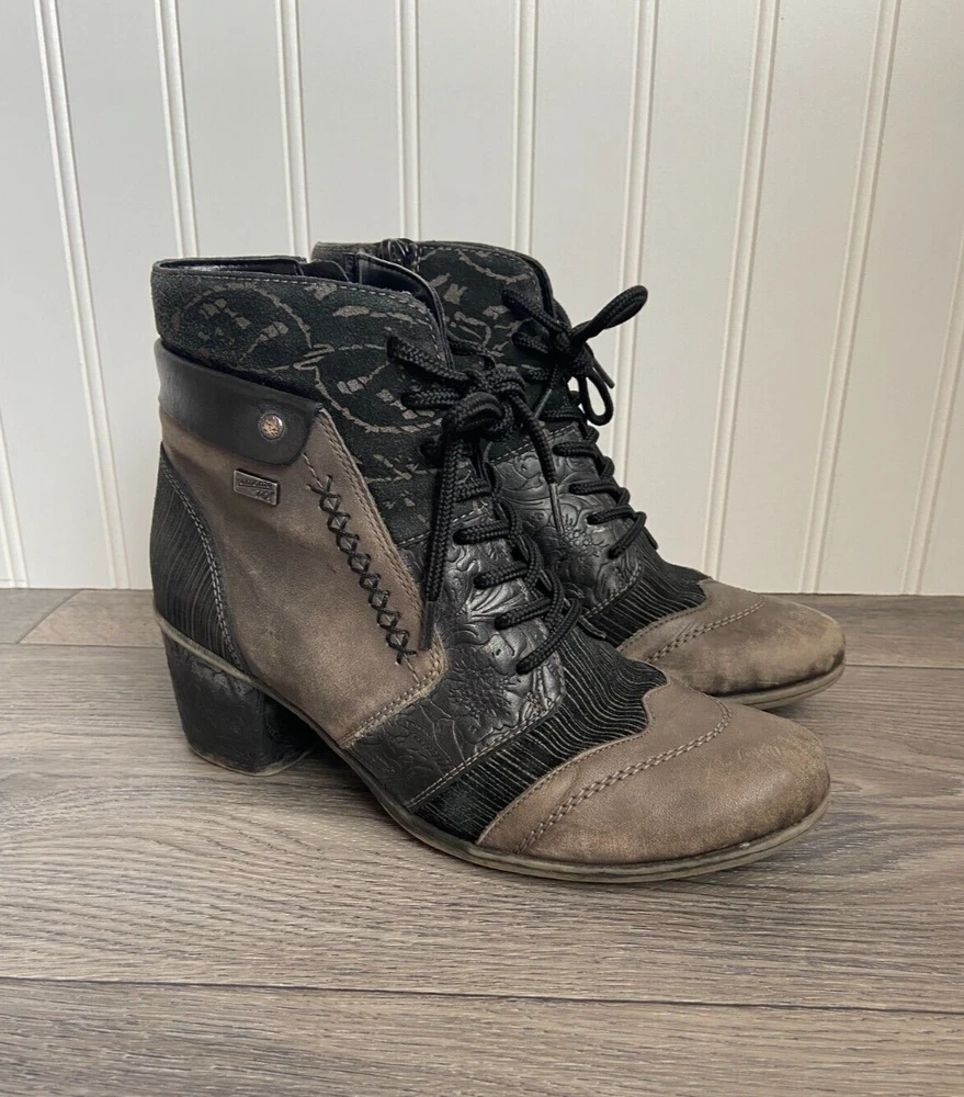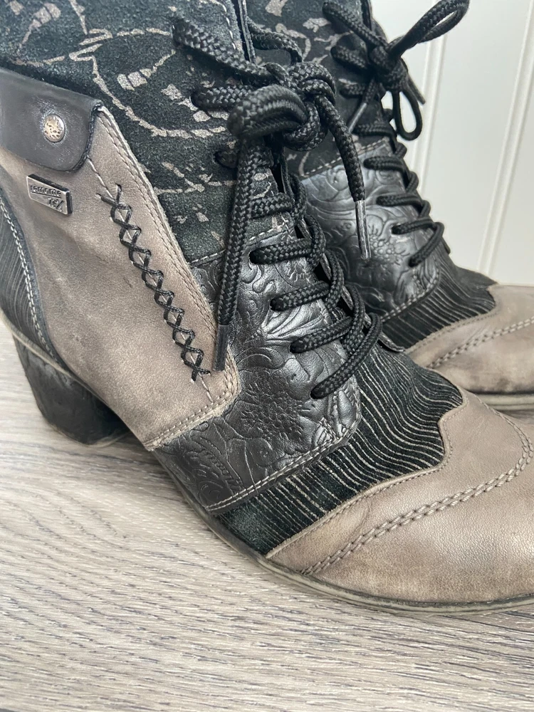 Elevate your equestrian look with these Remonte ankle boots. Crafted from high-quality leather, these boots feature an embossed pattern and lace-up closure for a chic and comfortable fit. The round toe and block heel style provide all-day comfort, while the ankle shaft style adds a touch of sophistication. Available in black and other sizes, these boots are perfect for any fashion-forward woman. These Remonte ankle boots are perfect for any occasion, whether you're headed to the office or out for a night on the town. The boots are designed with a laced closure for a secure fit and a round toe shape for a comfortable stride. Made from high-quality leather, these boots are sure to last for years to come.