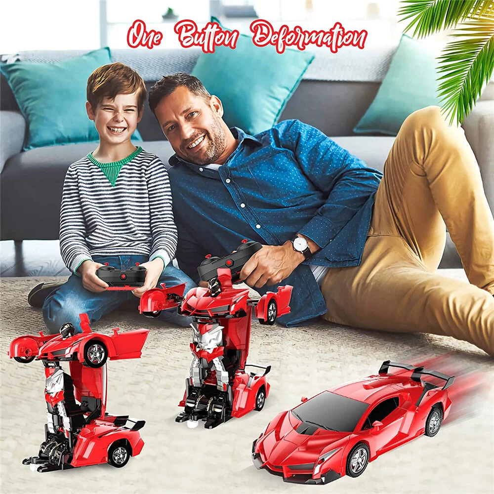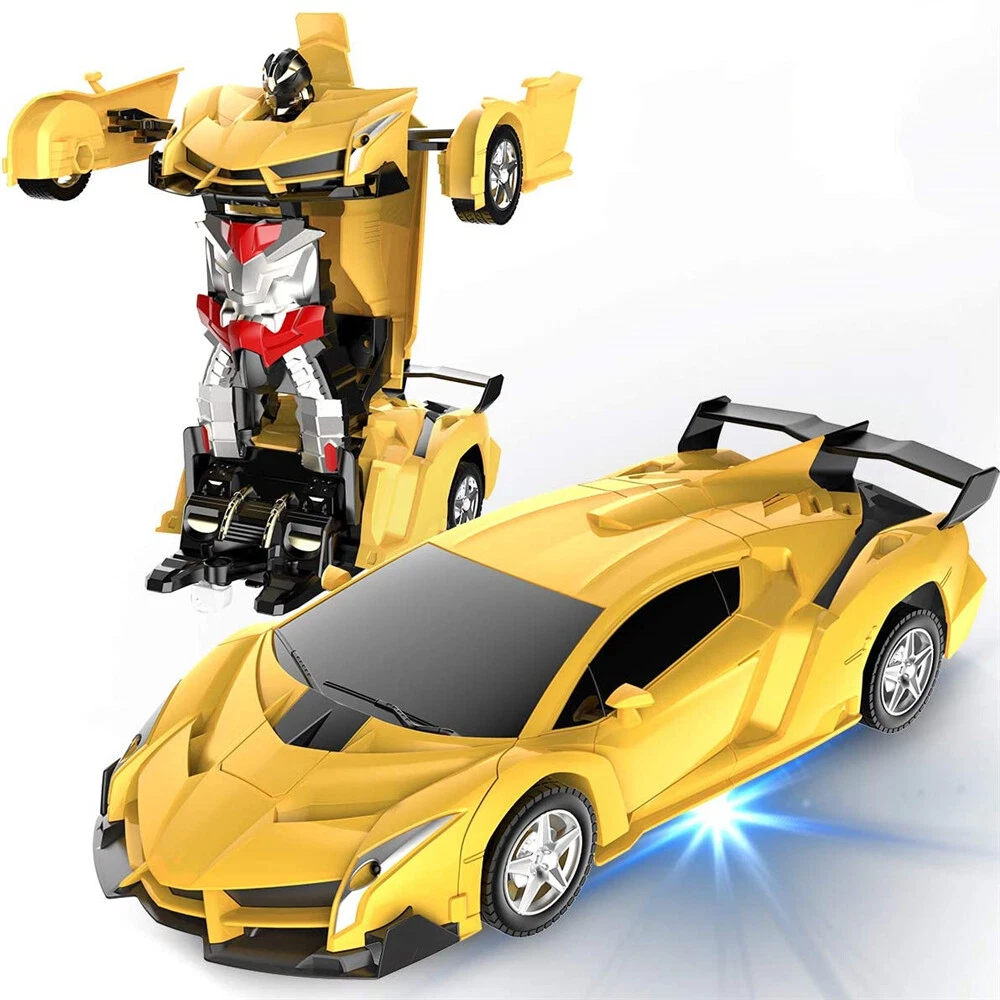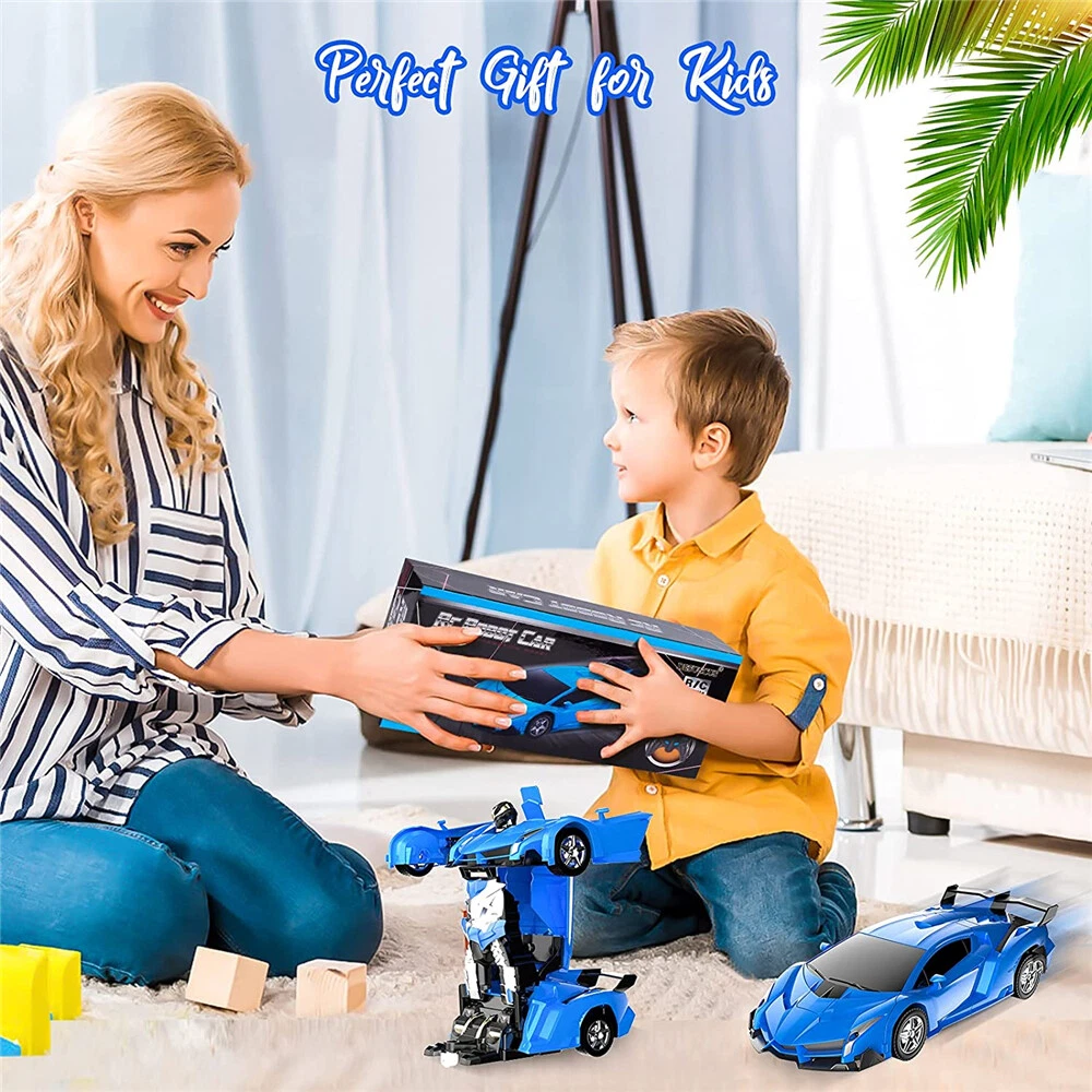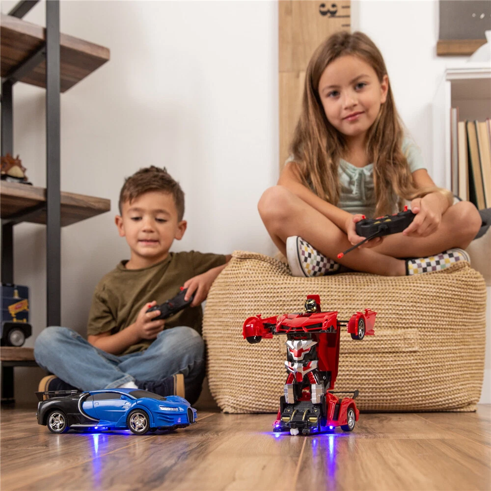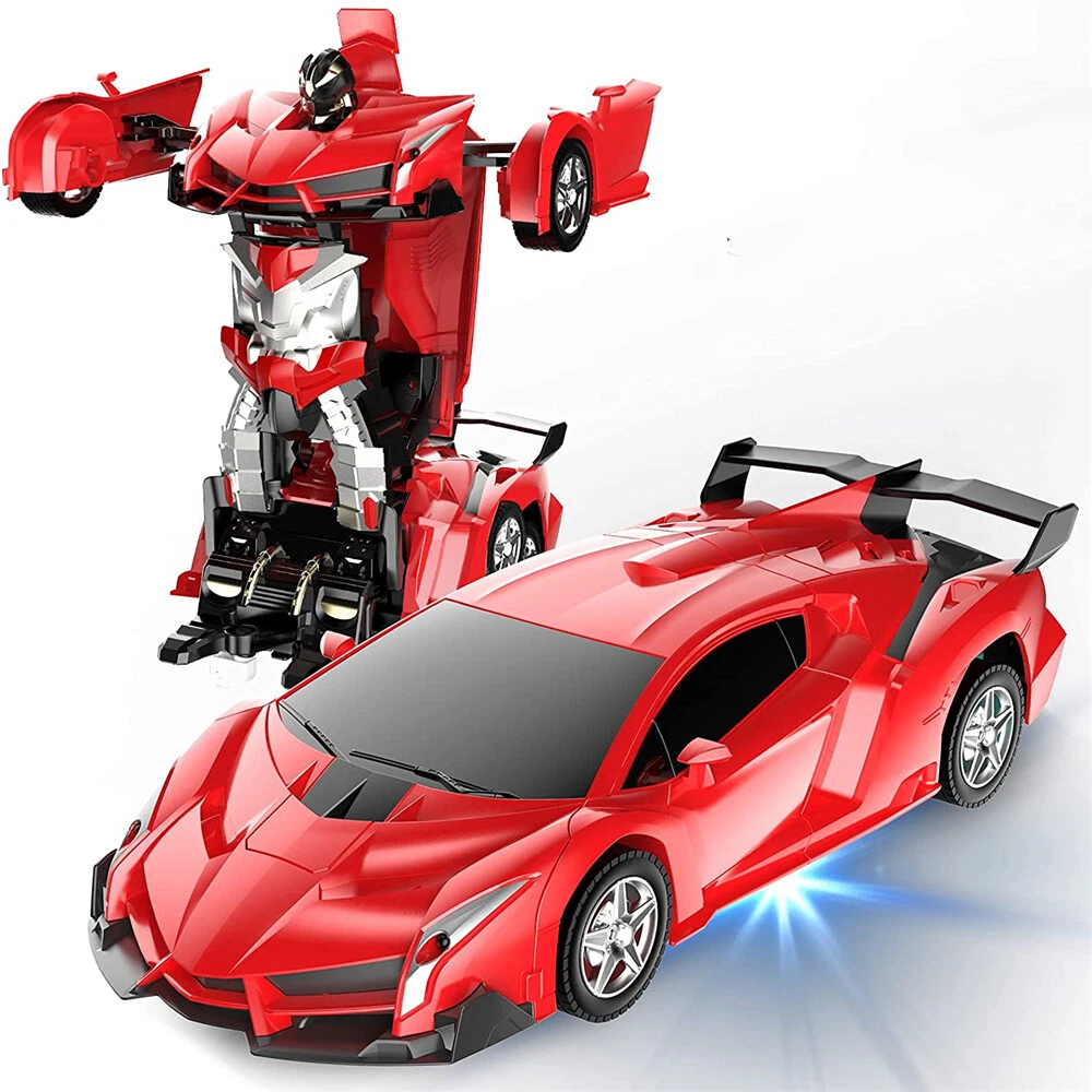 Feature: One-Button Deformation:This remote control robot car is 2-in-1 model car toy, and can be changed from car to robot with one button click, which transforms back and forth easily to have a great fun 360° Rotation & One-Click Demo:With a flexible drifting wheel on the bottom , this robot racing car can finish 360 degree rotation in both car and robot model flexibly, and kids can enjoy great fun with auto demo function. Robust 2.4G Remote Control: With strong 2.4Ghz trans mitter system, kids can easily control the robot car toy within 45 meters, and this RC model car is simple to operate for children with controller, forward, backward, turn right, turn left, one button deformation and one click auto demo High-quality Materials:This deformation robot car for kids is made of sturdy and non-toxic ABS plastic material, which is collision resistant and environmental-friendly, ensuing your kids have a lasting and happy entertainment Perfect Gift for Kids:With aerodynamic design and scratch-resistant materials, this gift toy car is easy to operate and ideal for kids’ birthday, Christmas or other festivals. Package Includes: 1x Remote Control Robot 1x Remote Control 1x 3 batteries 1x Battery charger