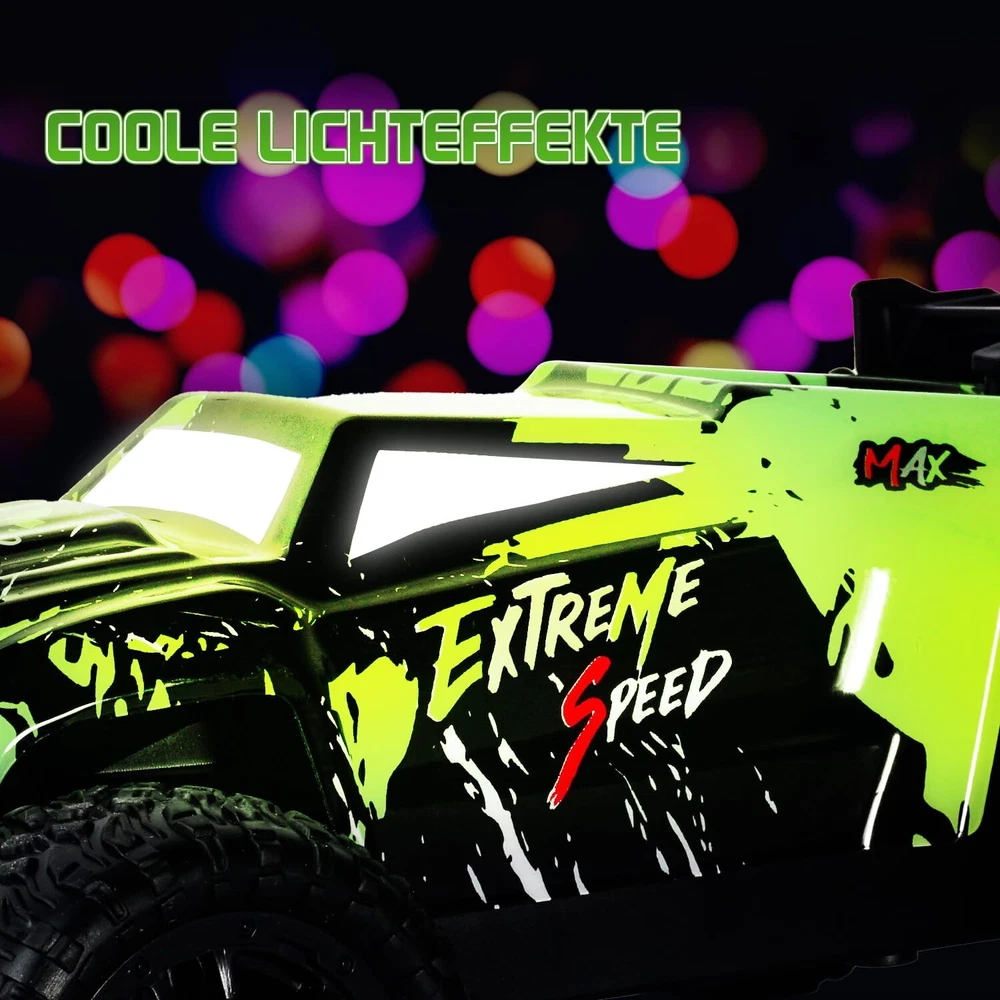 【Remote Control Car is a fantastic choice for beginners】 This 1/18 scale remote control monster trucks is equipped with an upgraded motor, reaching top speeds of up to 20 km/h. It not only has excellent acceleration but also allows for agile cornering, making it an easy-to-operate option for beginners. This remote control car for boys 4-7 8-12, serving as an exciting outdoor and indoor toy truck. Its robust structure and dynamic performance promise thrilling experiences, regardless of where your adventures take you. 【Cool Graffiti Car Shells and LED Car Lights】 We have equipped this remote control car with different color graffiti car shells, so children can choose their favorite color to race. At the same time, we have also fitted the remote control car with cool LED car lights. This allows children to experience the fun of racing even at night. This not only increases visibility for safer night racing but also adds a certain flair to the car's design, making racing even more thrilling and fun. 【Over 40 Minutes of Extended Playtime】 We've equipped our remote control truck with 500mAh high-capacity rechargeable batteries, allowing for approximately 40 minutes of driving pleasure. The set includes a USB charging cable, which can be easily inserted, charged and played! With this feature, the fun never stops. can enjoy long-lasting playtime and have plenty of time to perfect their driving skills. Battery power is no longer a limit but an advantage for our remote control car. 【Safe Materials】Our RC truck has been newly upgraded with sturdy front bumpers and rubber tires. When driving on rugged surfaces, it has a strong resistance to impact. The high-quality rubber tires have shock absorption, strong grip, and anti-slip functions, allowing the remote control car to easily handle extreme road conditions such as grass, sand, and uneven surfaces. We prioritize safety and durability, ensuring that our toys not only bring fun but also stand the test of time, providing a safe and entertaining environment for children. 【Monster Trucks Gift for Boys Girls】 This RC car is durable, speedy, and fun, which is advisable for ' toy gifts. A great gift for birthdays and many other occasions. If you are looking for exciting and cool gift toys for boys & girls & adults, you will love our remote control car.