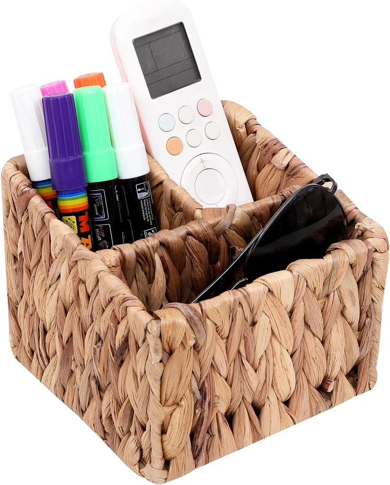 Remote Control Holder Wicker Desk Organizer Divided Storage Basket 3 Compartment Remote Control Holder Wicker Desk Organizer Divided Storage Basket,Hand Woven Cosmetic Storage Box with 3 Compartments,Water Hyacinth Remote Control Basket for Desktop Organizing Product Description: The Remote Control Holder Wicker Desk Organizer is a stylish and functional solution for keeping your remote controls and small items neatly organized. Hand-woven from water hyacinth, this basket offers a natural aesthetic while providing durable and spacious storage. With three divided compartments, it allows for efficient organization of remotes, cosmetics, and other small accessories, helping to reduce clutter and maintain a tidy desktop or living area. Features: Handwoven Water Hyacinth Design: Crafted from eco-friendly, handwoven water hyacinth, this storage basket offers a beautiful, rustic look that complements any home or office décor. Three Divided Compartments: The organizer features three separate compartments, allowing you to neatly store remote controls, cosmetics, or other small essentials. Versatile Storage Solution: Ideal for use in living rooms, offices, or bathrooms, this basket can be used for a variety of storage needs, from desk organization to cosmetic storage. Durable and Sturdy Construction: Made with high-quality materials, the basket is both sturdy and long-lasting, providing reliable storage for everyday use. Space-Saving Design: Compact and efficient, this organizer helps maximize space by keeping items within easy reach while minimizing clutter. Easy to Clean: The smooth surface of the wicker makes it easy to wipe clean, ensuring that your storage solution remains looking fresh and organized. Lightweight and Portable: The lightweight design makes it easy to move and reposition, whether you're organizing your desk or transferring it to another room. Stylish and Functional: Combining practical storage with an attractive design, this wicker organizer adds both functionality and a touch of elegance to any room. Part Number LYD05 Batteries Required? No Finish Powder Coated Number of Items 1 Mounting Type Insert Mount Item Weight 0.35 Kilograms Number of Compartments 3 Unit Count 1.0 Count Color Brown Finish Type Powder Coated Product Dimensions 5.51"D x 5.51"W x 4.33"H Material Water Hyacinth Specific Uses For Product Storage Item Weight 12.3 ounces Shape Rectangular Package Type FFP Special Features Moistureproof Special Feature Moistureproof Included Components No Shipping Fast shipping is very important for us. Our standard USA shipping service is FREE. Your order will be shipped within 1-2 business days upon full payment received. Your order will be delivered within 1-3 business days after the handling time. We only ship to the confirmed address. We reserve the right to cancel any order for any reason at any time. We are not responsible for undeliverable addresses. Returns and payment We offer a 30 days return policy from checkout winning date. FeedBack Your feedback very important to us, after you get your package and you are satisfied with our service please leave us positive feedback If you have any problem with your order / any questions please before leave any type of feedback For any questions, using eBay contact system Please visit our eBay store to check out other items for sale! Thank you for shopping at our store.