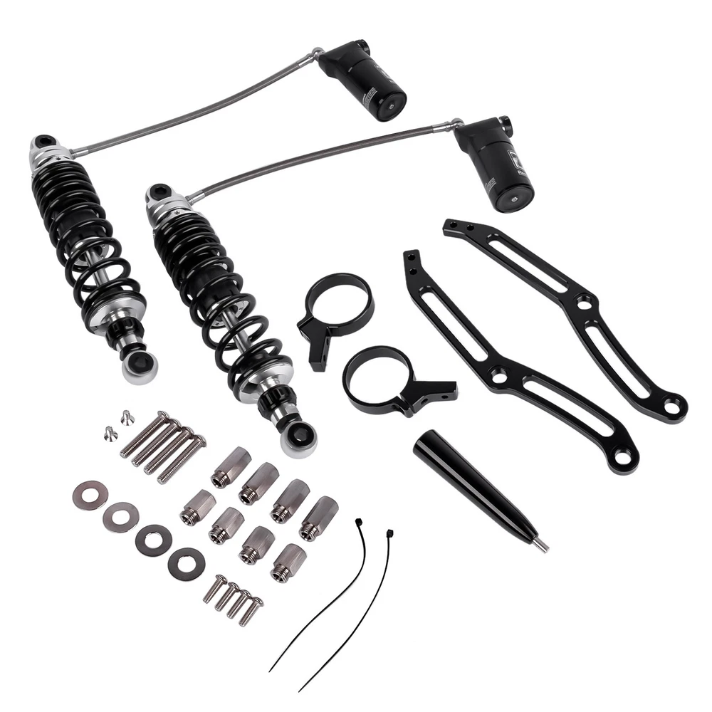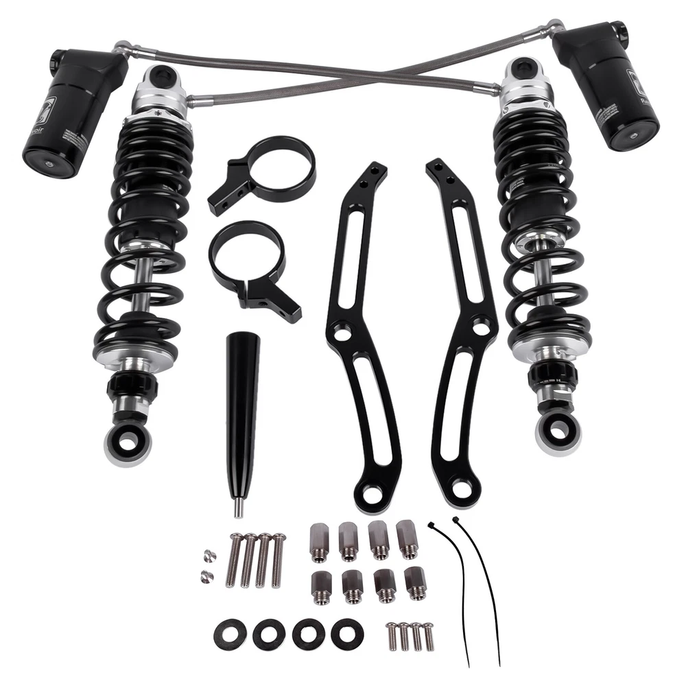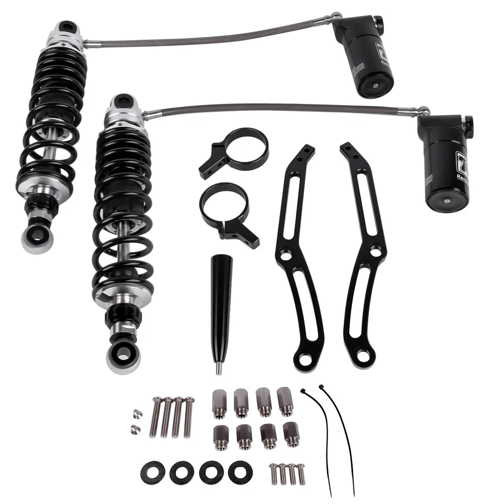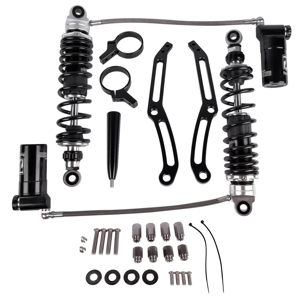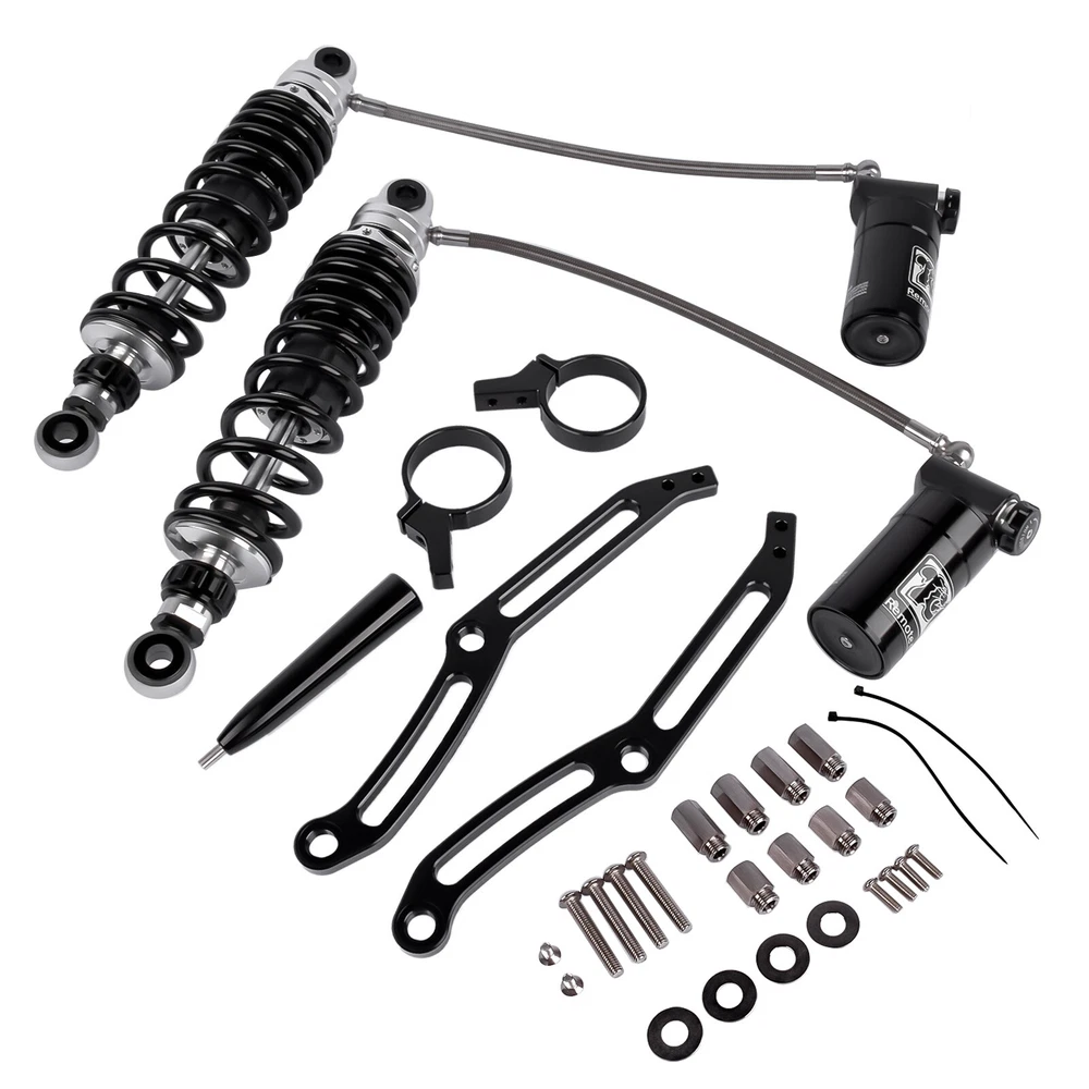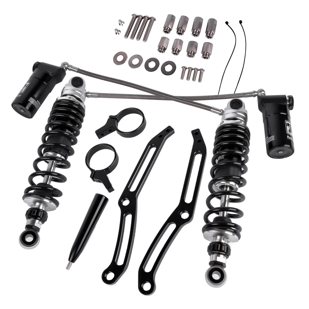 Remote Reservoir Rear Shock Absorbers for Harley Touring Glide 2014-2024 Black