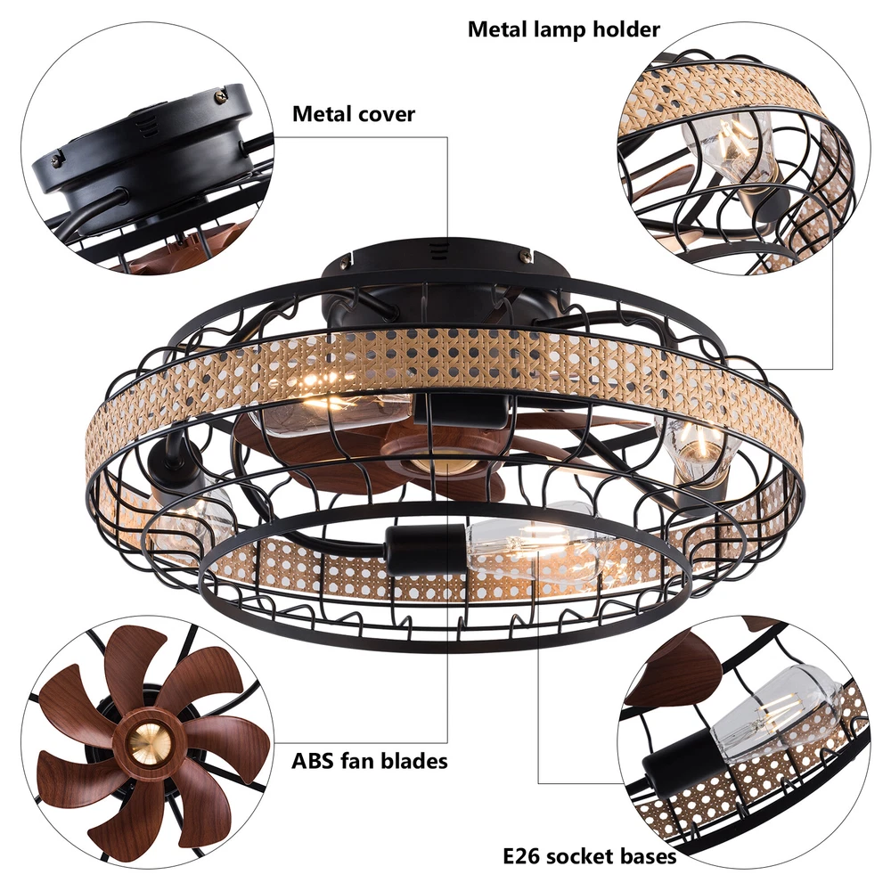 🧡🧡🧡 Welcome to Automaimaimai 🧡🧡🧡 Ceiling Fan Light Pure Copper Motor w/Control Remote living,dining room kitchen Description This ceiling fan light allows you to feel the bright light and enjoy the coolness at the same time. It has six gears of wind speeds with a timing function to meet your daily usage needs, and y ou can also reverse the direction of fan rotation in winter. It can be integrated with different decoration styles and is ideal to create an excellent life and sleep environment to accompany you in all seasons. Key Features Embrace Smart Life : With the intelligent remote control, you can freely adjust the wind speed (6th gear), lighting, and setting time (1/2/4 hour) while lying in bed within 16.4ft, avoiding catching a cold and saving electricity bills. Healthy and Energy-saving: The ceiling fan light provides more comprehensive air circulation and cooling, thereby reducing the frequency and time of air conditioning use, saving energy, and reducing expenses. It can avoid direct blowing and reduce the risk of air conditioning diseases. Build to Last: It is made of iron, ABS, and bamboo and adopts a painting and hand-woven processes, which is corrosion-resistant , strong, durable, and not easy to deform, so it can remain beautiful and practical for a long time. High Safety: Fan blades are hidden in a semi-enclosed lampshade, which can allow for unobstructed lighting and air supply to avoid accidents caused by getting caught in the blades. The multiple heat dissipation holes and wide voltage (85-265V) design can effectively ensure safety and extend product life, so you can use it with confidence. Multiple Functions: Integrating lighting and fans, illuminating the space while balancing room temperature, it has become a new choice for home fashion! You can also reverse the direction of the fan rotation in winter, blowing hot air from the top into the room and increasing the indoor temperature. Classic Appearance: Classic colors, lampshade with handmade bamboo weaving, and round shape make it eye-catching and can be a good decoration to blend in with different decor styles and add color to your room. Easy to Clean : The smooth surface and simple structure allow you to clean it with a dry cloth, saving you lots of time and effort. Excellent Gift: The beautiful appearance and good practicality make it a great gift for parents, friends, and lovers on birthdays, holidays, and housewarming. Protective Packaging: The foam can effectively reduce the normal impact and ensure that this item is fully delivered to you to the greatest extent. Guaranteed Customer Service: We aim to provide quality products and services. If you have problems, please feel free to contact us. We will reply and solve the problem for you as soon as possible. Details Round Base: The large round base with a diameter of 7.09in increases stress area, and can make the item fixed firm without falling easily. Pure Copper Motor: It has stable performance, low-temperature rise, and 35db low noise, providing a quiet working and sleeping environment. Standard Lamp Holder: The standard E26 lamp holder can support the use of LEDs, Halogens, etc., making it very convenient for you to purchase and replace. Application It is ideal for the living room, dining room, kitchen, study bedroom, small bedroom, conference room, and other places of 107.64-161.46ft² . It is also suitable for sloping ceilings. Specifications Color: Brown+Black Material: Iron, Bamboo, ABS, Copper Style: Classic Process: Painting, Hand-woven Lamp Source Type: 4* E26 Bulbs(Not Included) Motor Type: Pure Copper Motor Assembly Required: Yes Mounting Type: Ceiling Mount Number of Fan Blades: 7 Number of Items: 1 Control Method: ‎Remote, Wall Switch(Not Included) Remote Control Distance: 3-5m/ 9.84-16.4ft Voltage: 85-265V Power: 40W Battery Type: 2*AAA Batteries(Included) Wind Speed Gears: 6 Timing: 1/2/4h Efficiency: E Suitable Area: 10-15㎡/ 107.64-161.46ft² Noise: 35dB Base Diameter: 18cm/7.09in Overall Lampshade Diameter: 46cm/18.5in Lampshade Opening Diameter: 30cm/11.81in Package Included 1* Ceiling Fan Light 1* English Manual 1* Remote Control 2* AAA Batteries All Accessories for Assembly Notes For a safe and secure installation, please ensure that the electrical box is firmly mounted and properly attached to a structural part of the building. Please make sure that all wires are connected. When unpacking, be careful not to pull with the wires as a bad connection may result. Please do not turn on the power until fully assembled. We recommend installation by professionals. This product does not include a light bulb. Please prepare four E26 bulbs in advance. Please do not install the lamp next to the air conditioner or heater, which will affect the service life of the lamp. Please wear electric insulation gloves(not included) and avoid scratching the surface of the lamp plate and the electric wire when installing. Please make sure that the power supply has been cut off before installation, and conduct a power test before installation. Please use the lamp within the applicable voltage range and clean lamps regularly. Please cut off the power supply when you clean the light or replace light bulbs. Please wipe with a soft and dry cloth, it is not suitable to clean with cleaning agents and water. Please read the manual completely before installation and use, and pay particular attention to the safety instructions included. Please allow the slight color difference caused by the shooting light and 1-3cm error due to manual measurement, and make sure you do not mind before you order. Payment Delivery details Terms of sales About us Contact us Payment We accept ebay payment 。 Fees such as import duties, taxes are not included in the item price or shipping costs. These charges are the buyer's responsibility. Delivery details Shipping: 2-9 working days to: USA Terms of sales We maintain high standards of excellence and strive for hundred percent 