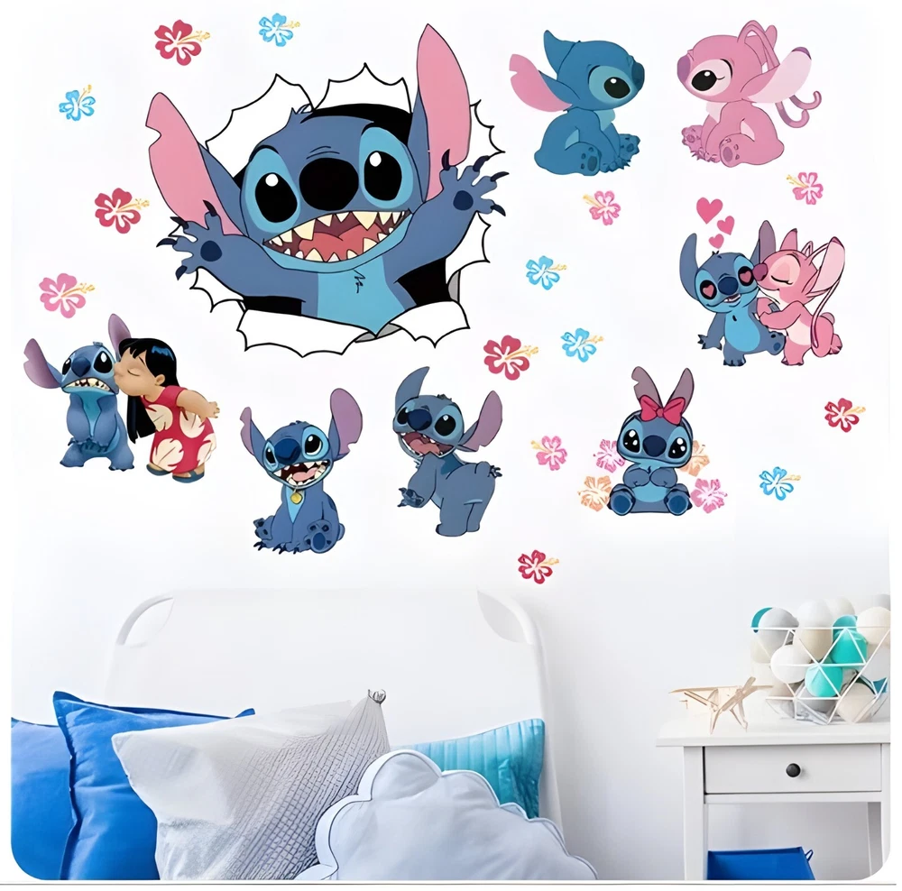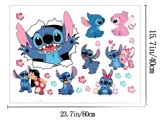 Character Family: sticker Type: Decal gtin13: Does Not Apply Brand: Home Decor Character: Stitch, flower UPC: Does Not Apply Suitable For: Door, Wall, Wardrobe, Window Shape: cartoon Department: Unisex Baby & Toddler, Kids, Teens, Adults, Men, Women Room: Any Room, Bathroom, Bedroom, Cloakroom, Closet, Dining Room, Entryway, Foyer, Garage, Greenhouse, Guestroom, Kitchen, Living Room, Lounge, Office, Patio, Porch, Study, Sunroom, Kids Room, Nursery Features: DIY, Decorative, Removable, Self-Adhesive, Smooth, Waterproof Material: Vinyl Style: Decorative Color: Blue Theme: wall Sticker, Decal, Vinyl, home decor, kids room Decor, living room, living room Decor, lucky sticker, background, Lili & Stitch Subject: lily and stitch