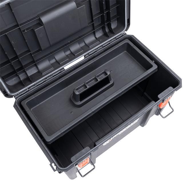 Renegade Industrial Large Stacker Stackable Storage Tool Box Product Description Large Stacker These Renegade Industrial Large Stackable Storage Toolboxes are industrial quality & ideal for professional use. These heavy-duty storage tool boxes are compatible for stacking with the Renegade Industrial Slim Storage Tool Box (RISSTBSS) & the Renegade Industrial Mobile Storage Tool Box (RISSTBMS), the Renegade Industrial Clear Lid Stackable Storage Tool Box (RISSTBCL) & the Renegade Industrial Open Box Crate Stackable Storage Tool Box (RISSTBOB) (sold separately). These 5 toolboxes can be stacked & locked on top of each other for safety & transport with the heavy-duty clipping system. Features include a waterproof seal & purge valve. Made from Polypropylene (PP) for impact strength & durability for anything the jobsite throws at you. Includes 1 x Tool Tray Features Equipped - With Waterproof Seal & Purge Valve Compatible - For Stacking with the Renegade Industrial Slim Storage Tool Box (RISSTBSS) & the Renegade Industrial Mobile Storage Tool Box (RISSTBMS), the Renegade Industrial Clear Lid Stackable Storage Tool Box (RISSTBCL) & the Renegade Industrial Open Box Crate Stackable Storage Tool Box (RISSTBOB) (Sold Separately) Made From Polypropylene (Pp) - For Impact Strength & Durability TradeTools Exclusive! Specifications Material Polypropylene (PP) Dimensions 560 x 341 x 335mm Warranty 12 Month Industrial Warranty Technical Specification Brand Renegade Industrial Weight 6kg Listing and template services provided by inkFrog