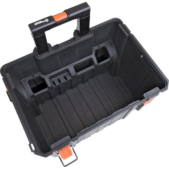 Renegade Industrial Mobile Stacker Stackable Storage Tool Box Product Description Mobile Stacker These Renegade Industrial Mobile Stackable Storage Toolboxes are industrial quality & ideal for professional use. These heavy-duty storage tool boxes are compatible with the Renegade Industrial Slim Storage Toolbox (RISSTBSS) & the Renegade Industrial Large Storage Toolbox (RISSTBLS), the Renegade Industrial Clear Lid Stackable Storage Tool Box (RISSTBCL) & the Renegade Industrial Open Box Crate Stackable Storage Tool Box (RISSTBOB) (Sold Separately). These 5 toolboxes can be stacked & locked on top of each other for safety & transport with the heavy-duty clipping system. Includes a Telescopic Metal Handle, All Terrain Wheels & an Integrated Tool Bar. Other features include a waterproof seal & purge valve. Made from Polypropylene (PP) for impact strength & durability for anything the jobsite throws at you. Includes All Terrain Wheels Integrated Tool Bar Features Equipped With - Waterproof Seal & Purge Valve Compatible - For Stacking with the Renegade Industrial Slim Storage Tool Box (RISSTBSS) & the Renegade Industrial Large Storage Tool Box (RISSTBLS), the Renegade Industrial Clear Lid Stackable Storage Tool Box (RISSTBCL) & the Renegade Industrial Open Box Crate Stackable Storage Tool Box (RISSTBOB) (Sold Separately) Made From Polypropylene (Pp - For Impact Strength & Durability All Terrain Wheels - Great for All Surfaces Telescopic Metal Handle Integrated Tool Bar TradeTools Exclusive! Specifications Material Polypropylene (PP) Dimensions 560 x 417 x 390mm Warranty 12 Month Industrial Warranty Technical Specification Brand Renegade Industrial Weight 9kg Listing and template services provided by inkFrog