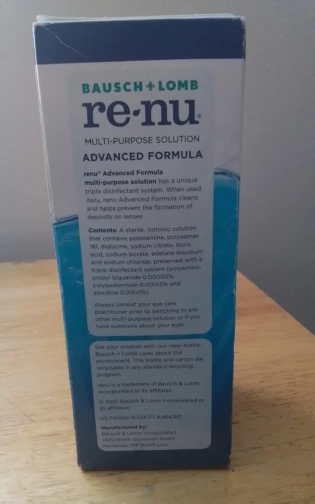 Model: N/a Features: Disinfecting Formula Item Width: 4 in gtin13: 310119043035 Type: Multipurpose Solution Period After Opening (PAO): 12M Brand: renu UPC: 310119043035 Color: Clear MPN: Does Not Apply Country/Region of Manufacture: United States Volume: 12 fl oz Item Height: 7 in Size Type: 12 fl oz Item Length: 8 in Expiration Date: 6-2025