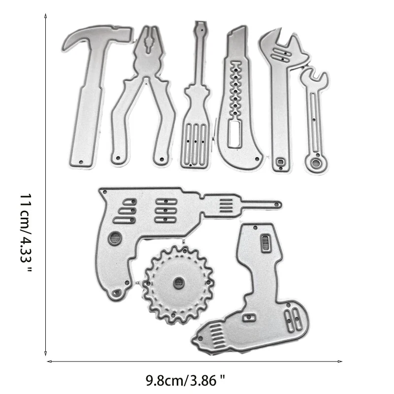 Repair Tool Metal Cutting Dies Stencil DIY Scrapbook Album Paper Card Template and high Features: This dies stencil template is carbon steel. You can use this die to create incredible shapes from your favorite cardstock and paper, allowing your card and scrapbook designs to be totally unique. A good your kids to cultivate their hands-on ability. Your self-made will be a big surprise to your friend. for scrapbooking, card making, paper theme invitations, pocket scrapbooks, album decoration, photo frame Specifications: Patterns: Repair Tool Carbon Steel Size: approx. 110 x 98mm / 4.33 x 3.85in Color: Silver Quantity: 1 set Note: No retail package. Please allow 0-1cm error due to manual measurement. pls make sure you do not mind before you bid. Due to the difference between different monitors, the picture may not reflect the actual color of the item. Thank you! Package includes: 1set x Dies Stencil (other accessories in the picture is not included.)
