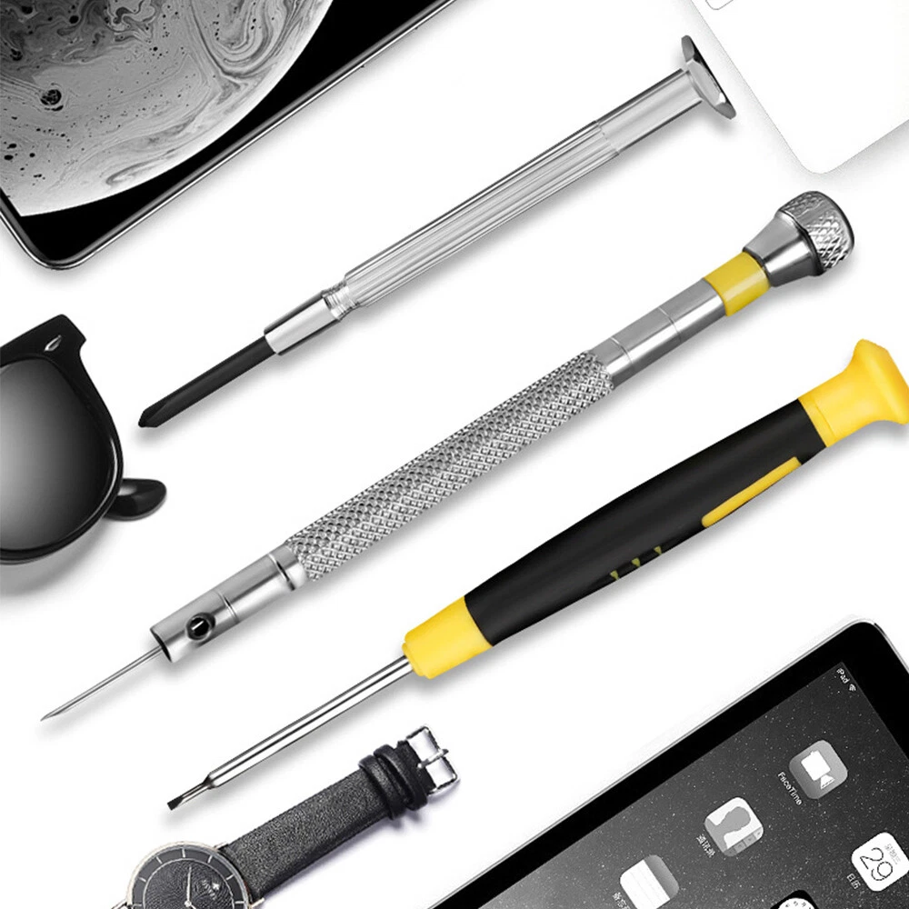 Repair Tool with Case Eyeglass Repair Kit Phones Watch Glasses Repair Set 【Perfect For】Daily electronic repairs, smartphones, watch repairs, jewelry repairs, and other small screws. Rotating Design Eyeglass Repair Kit 【End Cover】Features a rotating design, making it flexible and comfortable to use. The tightly combined gap ensures a smooth rotation, improving efficiency and ease of use. High Quality 【Material】Made of high-quality chrome vanadium steel, with a hardened carbon steel shaft and black oxidation treatment. This makes the screwdriver set durable and corrosion-resistant. The small size is perfect for handling tiny screws. Warm Tips: Please keep the Mini Screwdriver Set out of reach of children and pets.