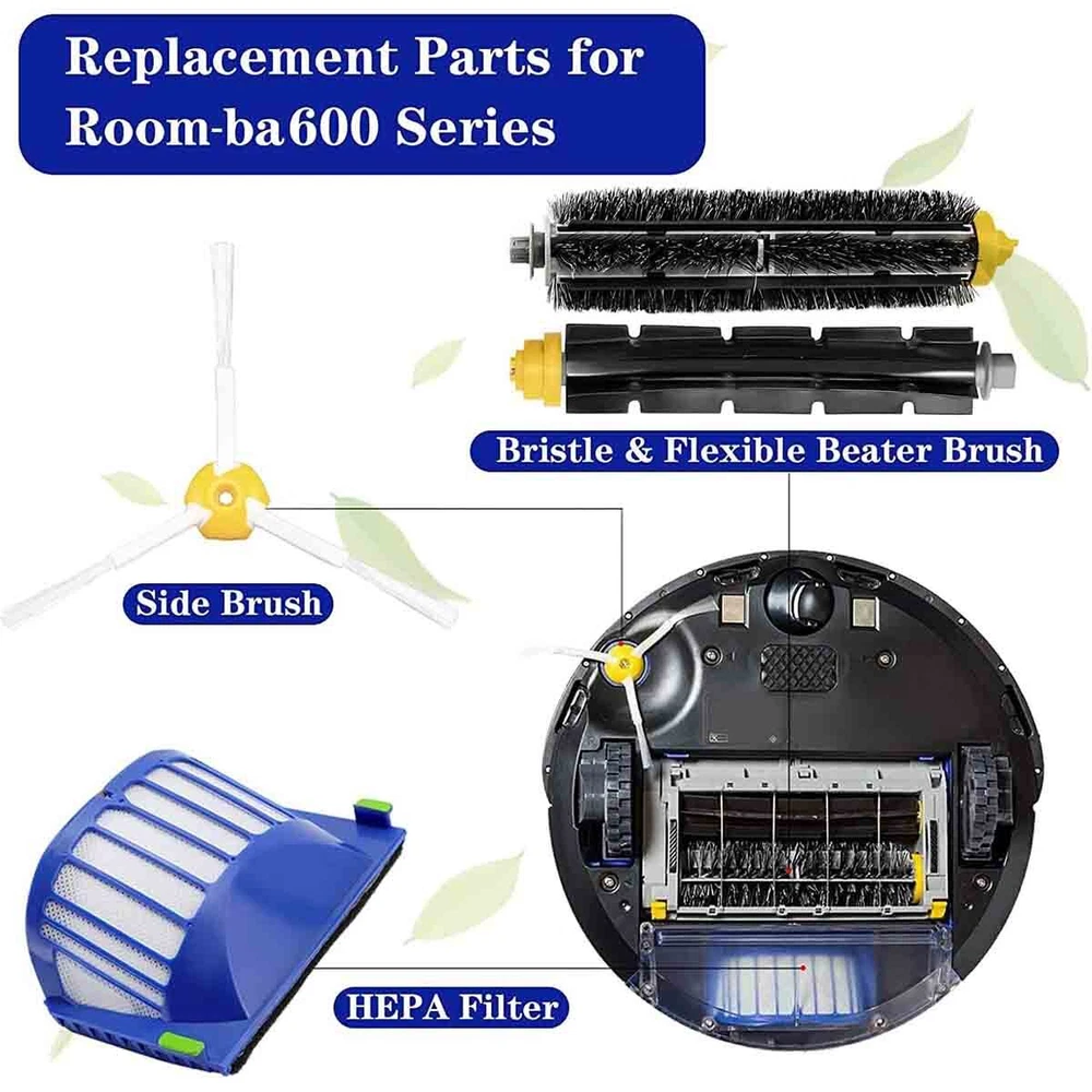 Product Details: The replacement parts is compatible for iRobot Roomba 600 series 595 610 614 618 620 630 635 640 650 660 665 680 685 690 692 694 695 vacuum cleaner accessories.Our replacement parts kit contains everything you need to help maintain your Irobot Roomba 600 series cleaning performance in one convenient kit. Please note that the side brushes and screws in this kit are not suitable for the iRobot Roomba 645 655 675 671, if you need the right parts you can contact us and we will help you find the right thing. Features: Regular replacement of the filter will maintain Roomba's cleaning performance while reducing infiltration of dust, pollen. The filters are easy to see and access, so you can snap them on and off with minimal effort. Compatible with all Roomba 600 Series robots with an AeroVac Bin. The Side brush for iRobot Roomba Robots reaches deep into corners and edge.Easy to install and durable, keeping your home clean with iRobot roomba vacuum cleaners. Package includes: 3x side brush-3 3x Screw 2x Red Cleaning Tool 3x Vacuum Filter 1x Bristle Brush 1x Beater Brush On Sep 26, 2024 at 04:31:07 PDT, seller added the following information: