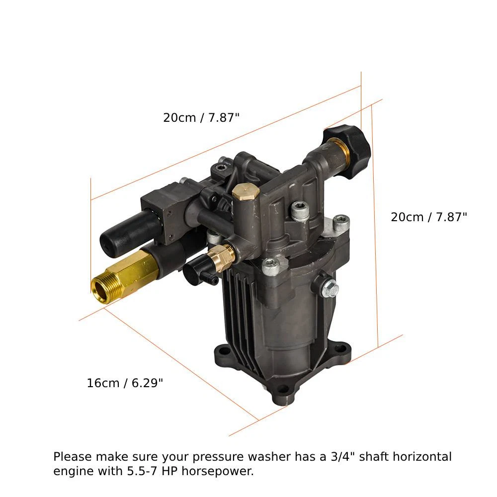 gtin13: Does not apply UPC: Does not apply Pump Head: Aluminum Drive: Engine Driect Engine Power: 5.5hp~7hp Color: Dark Gray Weight: 5.4 lbs / 2.45kgs Hollow shaft: 3/4" /19.05mm Product Size: 7.87 x 7.87 x 6.29"(L x W x H) Type: Power Washer Pump Maximum Pressure: 3400 psi Keyway: 4.78mm /0.188" Brand: Unbranded Max Flow: 2.5 GPM