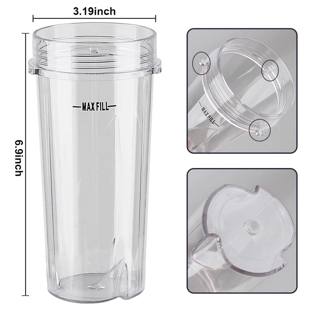 Fits Ninja BL203QBK/BL208QBK/BL207QBK/BL206QBK/BL209/BL201C/BL201/BL200/BL100/BL101/BL102 Single serve 16 ounce cups with Three TABS BLENDERS,you need make sure before buying that the cups you are replacing have "3 TABS" The lid is grey Dishwasher Safe Package include: 2 cups + 2 lids(grey)