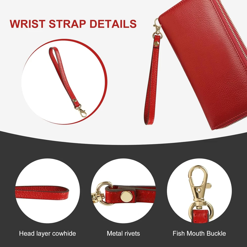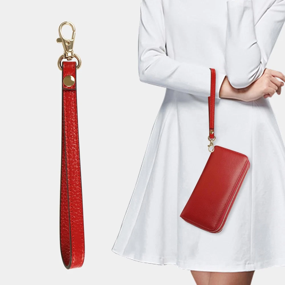 Replacement Red Wristlet Strap Leather Keychain Hand Strap for Clutch Purse Key