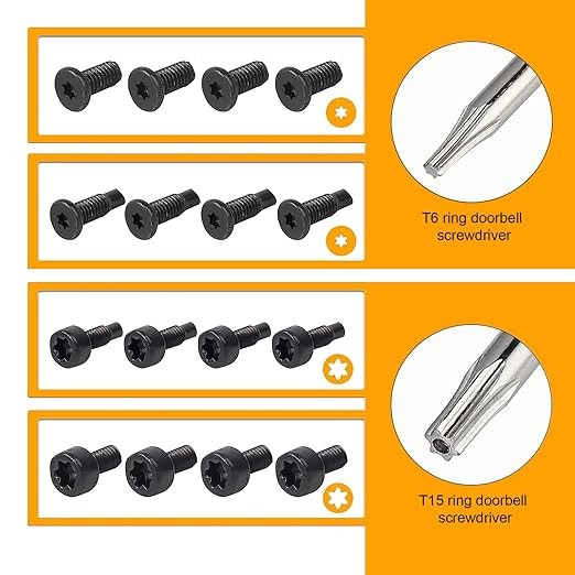 About this item 1. [Doorbell screwdriver] : universal screwdriver, suitable for various types of doorbells, including video doorbells and professional editions. If you lose your original screwdriver, this replacement will work for you. 2. USB Charging Cable Fit for Doorbell (2020 Release) Doorbell 2/Doorbell 3/Doorbell Plus / Doorbell 4 Power Cord, Peephole Cam, Doorbell Pro. (Note: Please check the charging port before purchasing). 3. [Screwdriver application]: It can be used to tear down the doorbell for battery change, charge & replacement as well as access for Wi-Fi password reset. It can also be used to take apart folding knives. [Double-end Bit]: This doorbell screwdriver includes a double-end screwdriver bit which can be used for all types of doorbell disassembly. 4. 【20Pcs Doorbell Screws】: 20 pcs of 4 types of doorbell replacement screws, T6 (short), T6 (long), T15 (short), and T15 (long), with 5 pieces for each type. The screws are made of industrial hardened carbon steel. Dimensions: 6.57 x 4.09 x 0.83 inches; 2.08 ounces.