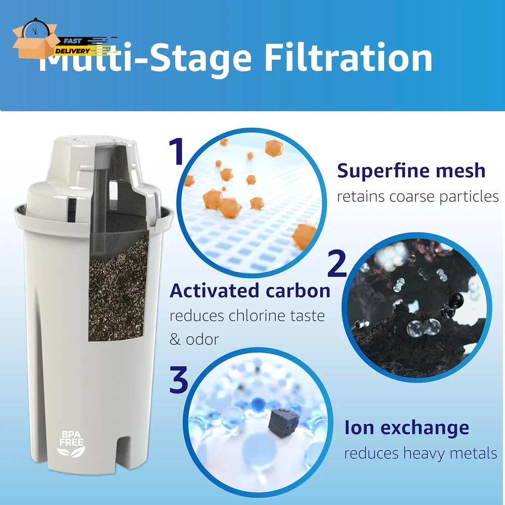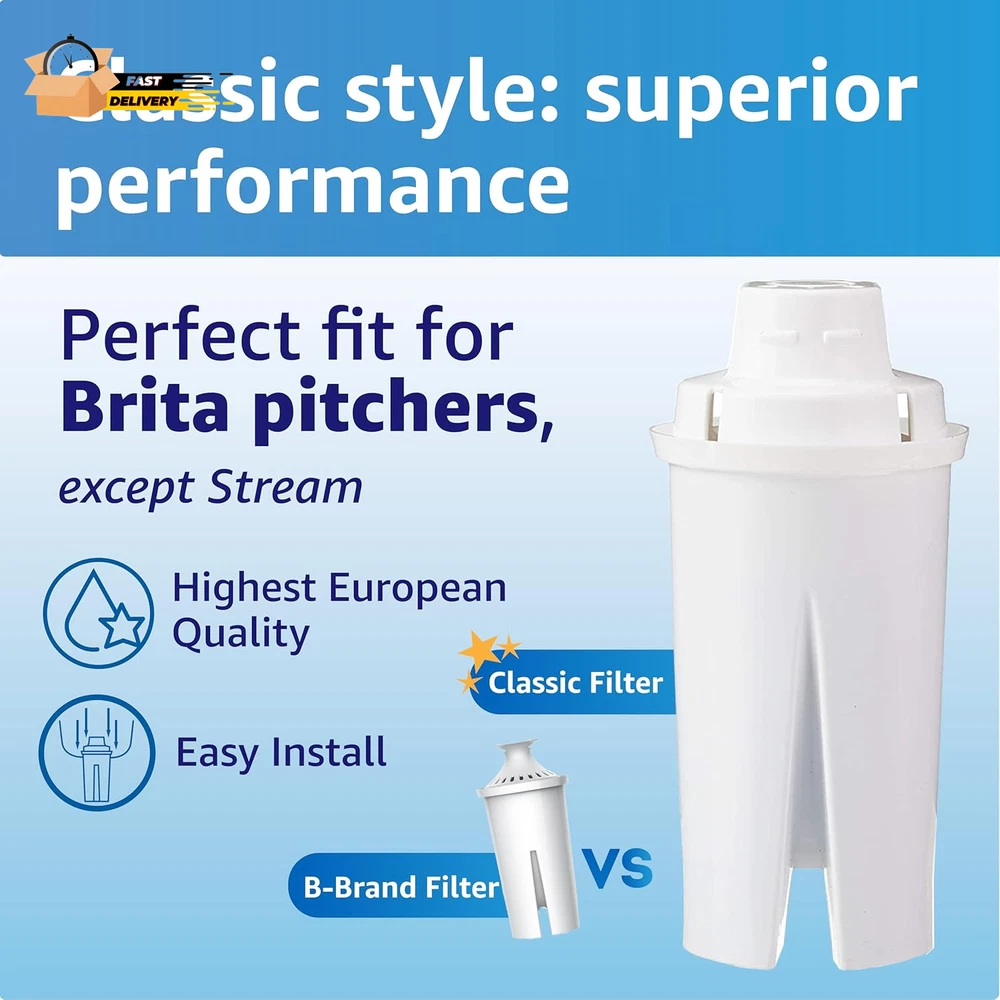 Store New Arrivals Add to Favorite View Feedback Contact Replacement Water Filters for Pitchers, Compatible with Brita Water Pitchers & Description Item model number 1038346 Unit Count 3.0 Count Manufacture Year 2024 External Testing Certification WQA certified against NSF/ANSI 42, 53, 401, & 372 standards Item Weight 0.62 Pounds Product Dimensions 2.36"D x 2.36"W x 4.72"H Material Plastic Global Trade Identification Number 00812501012204 Number of Items 1 Compatible Water Purifier Models BRITA Metro Water Pitcher, BRITA Infinity Water Pitcher, BRITA Champlain Water Pitcher, BRITA Color Series Water Pitcher, BRITA Space Saver Water Pitcher, BRITA Wave Water Pitcher, BRITA Everyday Water Pitcher, BRITA Denali Water Pitcher, BRITA Slim Water Filter Pitcher, BRITA Lake Water Pitcher, BRITA Classic Water Pitcher, BRITA Ultramax Water Dispenser, BRITA Huron Water Pitcher, BRITA Grand Water Pitcher, BRITA Deluxe Water Pitcher, BRITA Amalfi Water Pitcher, BRITA Soho Water Pitcher, BRITA Aqualux Water Pitcher, BRITA Atlantis Water Pitcher, BRITA Capri Water Pitcher, BRITA Marina Water Filtration Pitcher, BRITA Stainless Steel Water Pitcher, BRITA Monterey Water Pitcher, BRITA Pacifica Water Pitcher, BRITA Mini Plus Water Pitcher, BRITA Tahoe Water Pitcher, BRITA Chrome Water Filter Pitcher Size 3 Count (Pack of 1) COMPATIBILITY: Replacement carbon water filter for Amazon Basics and Brita pitchers and dispensers, excluding Brita Stream. This water filter replacement provides a great fit for water filtration systems for optimal performance. FRESH TASTE: Multi-stage filtered water system delivers consistently fresh, great tasting water. Each water filter replacement lasts for 40 gallons or up to two months. Plus each filter is steam treated to ensure the highest hygiene standards and provide superior protection. WQA CERTIFIED: Our water filters for pitchers are WQA certified against NSF 42, 53, & 372 standards to reduce chlorine taste, odor, zinc, cadmium, benzene, copper, and mercury for delicious filtered water. REDUCE WASTE & SAVE: Replace 300 single-use bottles with each Amazon Basics and Brita compatible pitcher water filter cartridge. Ideal for new apartment essentials and sustainable hydration. EUROPEAN ORIGIN: Manufactured in Europe, our water pitcher filter upholds quality standards as part of home and apartment essentials. Product Description The Amazon Basics water filter replacement for pitchers is a great addition to your kitchen essentials, providing a reliable water filter solution. Compatible with most Brita pitchers, except Brita Stream, these drinking water filter replacements offer consistently great-tasting water for your home. Experience the benefits of our charcoal water filter with multi-stage filtration technology that effectively reduces the taste and odor of chlorine, along with other contaminants like copper, mercury, and benzene. Each filter lasts for approximately two months or 40 gallons, making it a great water filter system for typical household needs. Stay hydrated while efficiently reducing waste by replacing up to 300 single-use plastic bottles with just one of our filters. Ideal for college dorms or as a part of your home essentials, this drinking home water filtration system enhances your water quality. Certified by the Water Quality Association, these water filters are Lead-free and BPA-free, providing sustainable hydration. Designed and made in Europe, the Amazon Basics replacement filters are a smart choice for any household looking to prioritize health. From the Manufacturer Amazon Basics ABOUT US We offer the best prices around on high quality products. Our E-store includes media such as books, movies, music and games while offering electronics, toys, sporting apparel, clothing, tools, general home, garden items and more. SHIPPING We are always working hard to ensure your package arrives as soon as possible. Please understand that some factors like weather, high postal traffic, and the performance of shipping companies are outside of our control. We offer free shipping to the lower 48 states and ship within 2 business days of payment, usually sooner. We do not accept P.O. Boxes. Please provide a physical address. For shipping outside of the continental USA, we only use eBay's Global Shipping Program.The item is shipped to KY and then sent to the rest of the world. International customers are responsible for all duties and taxes. Continue to check out in order to calculate costs for shipping the item to your country. Messages regarding eBay's Global Shipping Program MUST be directed at eBay EXCLUSIVELY. RETURNS We offer a 30-Day Return Policy on items which you are not completely satisfied with. You have the option for a full-refund or an exchange of the item. No returns are available on items shipped outside of the USA. PAYMENT We accept PayPal. CONTACT US This page content is yet to come Please ad us to your favorite seller and visit again later Thank You CUSTOMER SATISFACTION We try our very best to make sure every customer is completely satisfied. If there's a problem, message us! We're happy to help. WE ACCEPT Copyright © 2021 AutoDS. | All Rights Reserved
