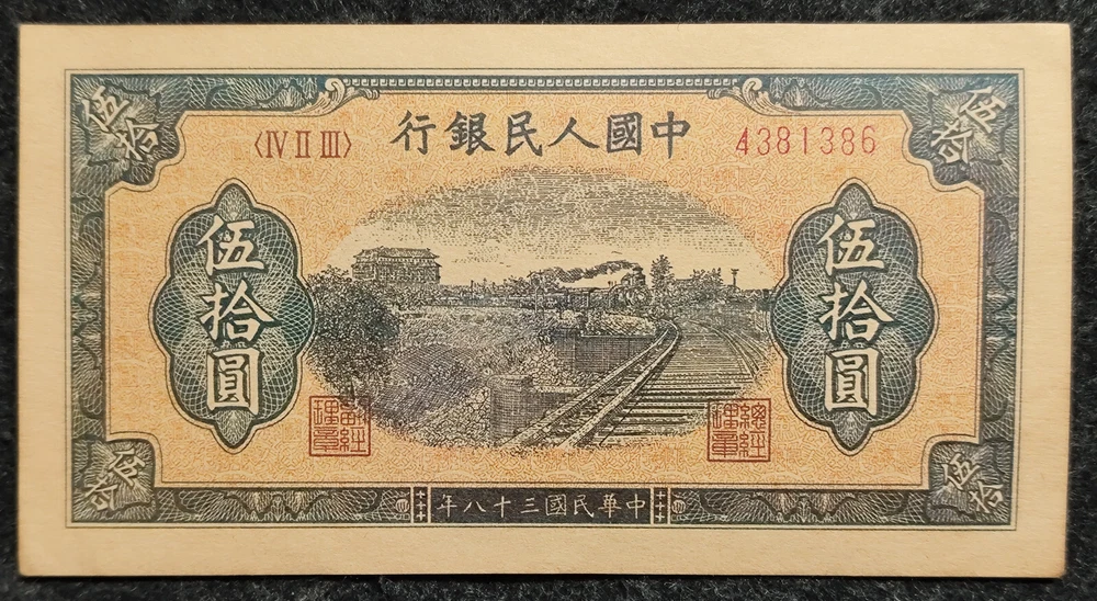 Republic China 38Year The People's Bank of China 1949 Issued 50Yuan Paper Money