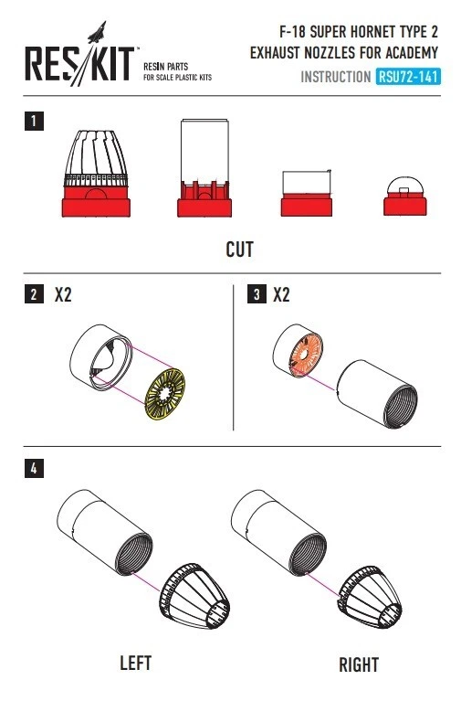 Scale: 1:72 Manufacturer: RESKIT Country/Region of Manufacture: Ukraine High-quality details. Paint: Unpainted, Unassembled, Kit do not contain paints and glue. Condition: New in Box Features: Kit Resin exhaust nozzles set Type of product: Exhaust nozzles Recommended kits: Academy Suitable for models: F-18 HORNET, F-18, HORNET, F18, F-18, SUPER HORNET, F18 SUPER HORNET Quality set, simple assembly. Suitable for experienced modelers, as well as for beginners. Due to the use of modern production technologies, all the details of the model fit perfectly, thanks to this, you can get an excellent result with minimal effort. ----------- This is a plastic model kit. Assembly and painting is required. Paint and glue is NOT included. Item Type: Scale model kit Commodity Attribute: Assembly The model is a plastic assembly model and needs to be assembled and painted by yourself You need an extra purchase of the glue, paint and so on!