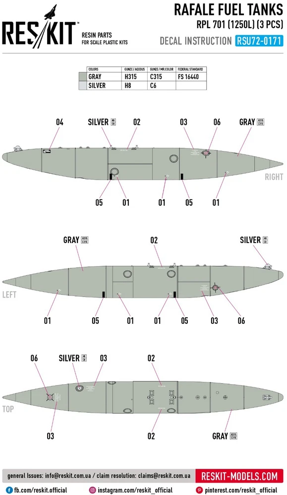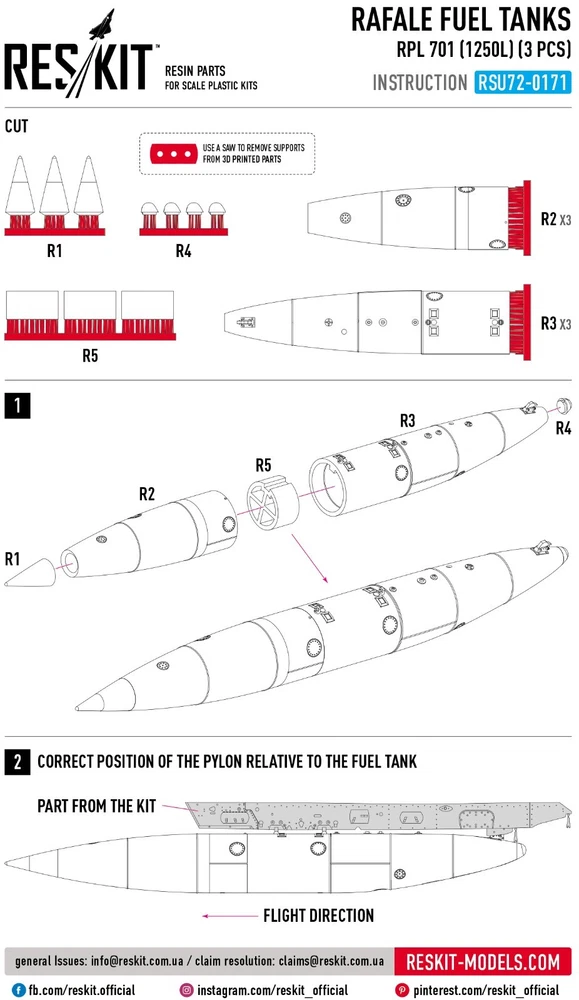 Scale: 1:72 Manufacturer: RESKIT Country/Region of Manufacture: Ukraine High-quality details. Paint: Unpainted, Unassembled, Kit do not contain paints and glue. Condition: New in Box Features: Kit RAFALE FUEL TANKS RPL 701 (1250L) (3 PCS) (3D PRINTING) (1/72) RESKIT - Accessories for Scale Plastic Kits SPECIFICATION Scale: 1/72 Type of product: Detail sets Recommended kit: Any Suitable for models: RAFALE, RPL 701, RPL701, RPL-701 Resin fuel tanks set Quality set, simple assembly. Suitable for experienced modelers, as well as for beginners. Due to the use of modern production technologies, all the details of the model fit perfectly, thanks to this, you can get an excellent result with minimal effort. ----------- This is a plastic model kit. Assembly and painting is required. Paint and glue is NOT included. Item Type: Scale model kit Commodity Attribute: Assembly The model is a plastic assembly model and needs to be assembled and painted by yourself You need an extra purchase of the glue, paint and so on!