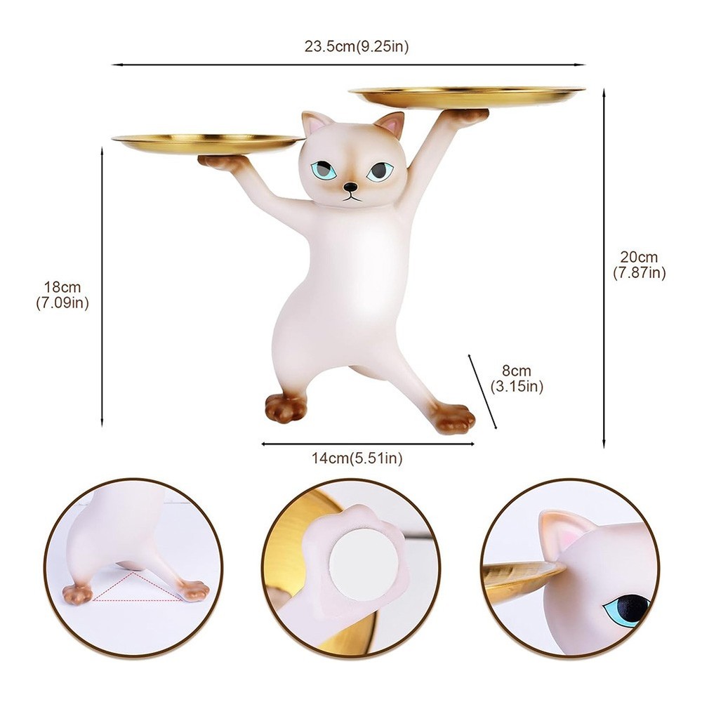 Tray for Decor, Decor Resin Tray for Candy Jewelry Earrings Key Holder6099 Material : Our cat statue with tray uses a heavy and resin material, very great to put your keys and spare change in it at of the day in your entryway room, or use it for something else. Adds Personality: This cat resin tray is fairly stable and in proportion to the cat, it's can add more funny for your home or office, but I suggest that it don't hold very much, because this is a relatively small item, you can put some small things into it, like keys or candy. Cute Cat Shape Tray: This cat candy tray is so funny, and it can adds more personality and fun to your home desk or office desk, the cat seems to be stretching its body, and its posture appears particularly cute. A Special Gift: Our cat candy holder is funny and cute, very great to use it as a gift for your friends, family or business man, you can use it in Thanksgiving, Christmas, housewarming, father's day, mother's day, winter or summer holidays, companies and other special and festive occasions of choice. Wide Uses: This cat candy dish is great to use it in living room as ring holder dish or dresser holders to collect ring, jewelry and earrings, you also can use it to put some candy or snack to entertain friends or guests in your home, bar, or office. Colour:C:Gray Material:Resin Size:. 36 x 17 x 25cm Package Contents: 1 x Storage tray