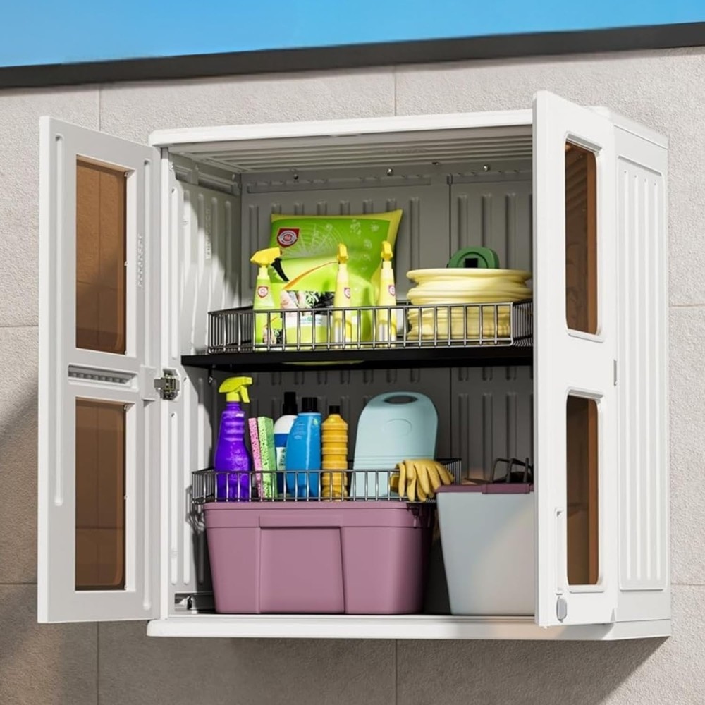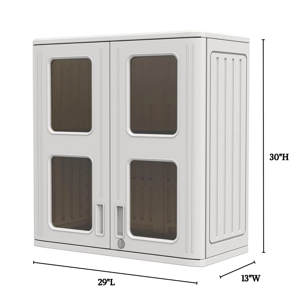 Maximize your bathroom space with this versatile Resin Toilet Storage Cabinet. Its compact design allows you to utilize even the smallest nooks and crannies, providing ample storage for household items, tools, or bathroom items. Crafted with durable materials, this wall cabinet features resin-glass windows that showcase your belongings while keeping them dust-free and no rust no moisture . The wooden accents lend a touch of warmth and elegance, seamlessly blending with various decor styles. Whether mounted in your living room, kitchen, or bathroom, this storage organizer offers both functionality and aesthetic appeal. With adjustable shelves, you can customize the interior to suit your specific needs. Elevated your organizational game and add a touch of sophistication to your space with this practical and stylish display case. Sturdiness :Durable Plastic Construction Multiple Wall Panels, Durable Construction that Crafted with sturdy resin material, ensuring long-lasting performance and protection for your stored items. Space-Saving Design: This compact bathroom storage wall cabinet offers convenient storage for small items while maximizing space utilization. Safety :Lockable .(no included lock ), Versatile Usage that Perfect for indoor or outdoor use, it can serve as a Toilet Storage Cabinet ,Wall Cabinet ,Bathroom Storage Organizer ,Decorative Display Case ,Small Kitchen Storage Cabinet Space-Saving Design: This compact wall cabinet offers convenient storage for small items while maximizing space utilization. Transparent Window: The clear door panels provide visibility, allowing you to easily locate and access stored items Design :Clean lines Neutral Colors And The Open Concept door Plan, Customizable Options that Available in different sizes and finishes to suit your specific needs and aesthetic preferences.