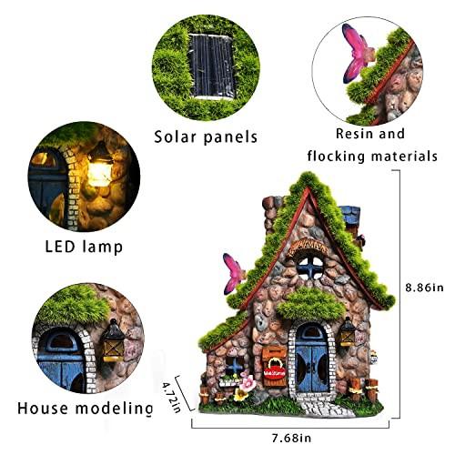 Return Policy Fast Delivery Trusted seller Resin Fairy House Statues with Solar Powered Lights, Funny Garden Sculptures with Flocked and Cobblestone Decor, Exquisite Garden Cottage Figurines Product Description 【Easy to Use】:This fairy h ouses for gardens does not need to be plugged in,just keep the button under the lantern in the "ON" state. It automatically charges during the day and only takes 5-8 hours to fully charge, and it will automatically light up and last 8-10 hours at night. The operation is safe and simple, and t is no need to worry about the safety of electricity. 【Exquisite Gift】: fairy garden miniatures are packed in anti-drop foam to prevent damage during transportation.The perfect size is 7.7 x 4.7 x 8.9 inches.It is one of the best gifts for Mother's Day,father's day, Thanksgiving, Wedding, Christmas and Housewarming. 【High-Quality & Waterproof】:Fairy garden house solar is made of resin, all parts are closely connected, with better waterproof performance. The pattern is hand-painted and coated with protective coating, which makes the outdoor statue sturdy and durable.Not easy to fade. 【Eco-Friendly Solar Lighting】:A renewable and clean energy,powered by electricity.The light is absorbed by the high-quality and durable solar panels and converted into electricity, which is stored in the built-in battery.Automatically charge during the day and automatically light up at night. 【Buy with Confidence】:If you aren't satisfied with our products, simply contact us within 30 days of purchase and we will easily resolve the issue. We offer a risk-free 30-day with every purchase! Shipping Returns Payment Shipping Shipping is FREE to all addresses other than APO/PO boxes in the lower 48 states. All our stock ships from US-based warehouses. Shipped via USPS or UPS (depending on location and package weight) Unless stated otherwise, all orders will ship within 24-72 hours of your payment being processed. Check our feedback to see the great reviews of FAST shipping we offer. Returns Seller does not accept returns Payment We currently accept payment via eBay managed payments only. Once payment is cleared, we will dispatch your shipment within 1-3 business days. Please refer to the "Shipping" tab for more information regarding shipping speed to your destination.