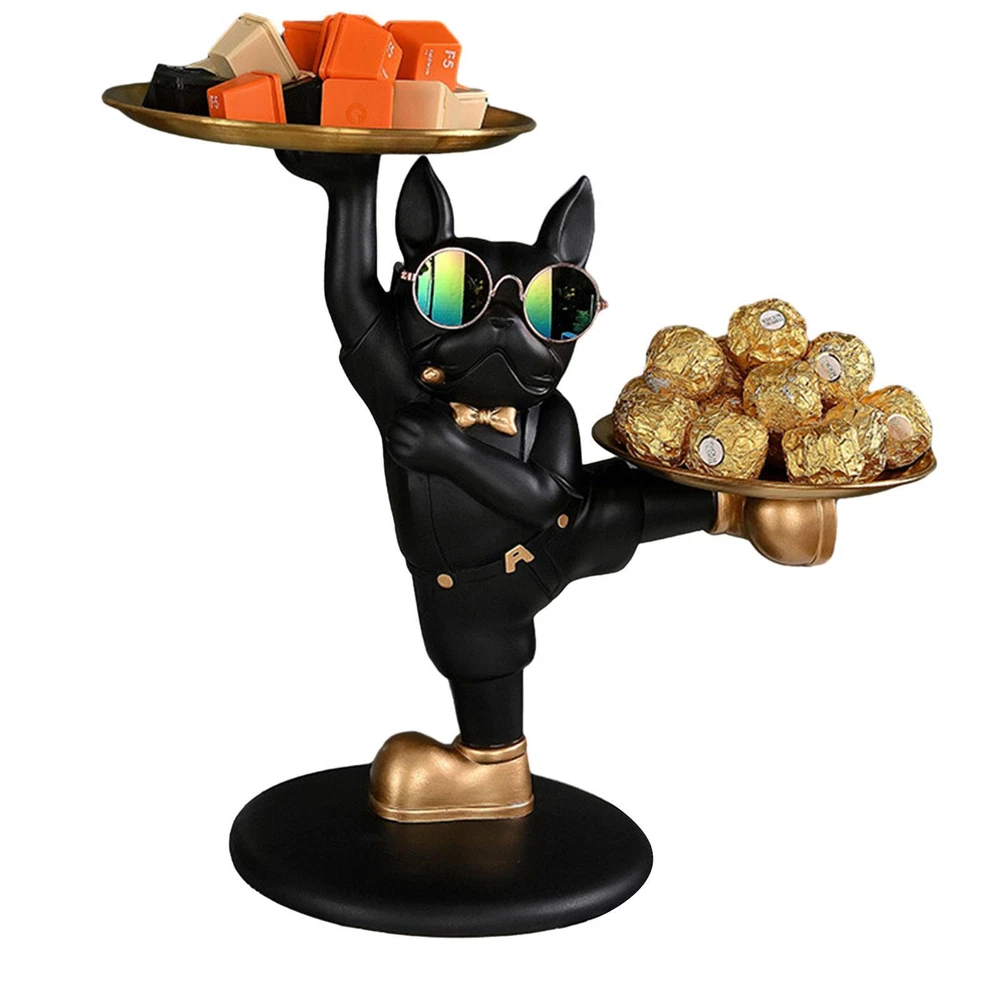 Resin French Bulldog Ornaments with 2 Tray Dog Statue Decor for Cake Biscuit Key Cool French Bulldog Shape: This modern art statue features a cool french bulldog wearing sunglasses and overalls suit, holding trays in a fancy style. It adds a touch of personality and charm to your home decor. Easily Organize Your Items: This french bulldog statue has double trays that are detachable, allowing you to store and display your items with ease. No more messy and cluttered spaces, just a neat and orderly home. Durable and Easy to Clean: This french bulldog statue is made of resin material, which is sturdy and long-lasting. The stainless steel trays are easy to wipe and wash, keeping them shiny and clean. Wide Range of Application: Whether you want to decorate your living room, bedroom, entryway, or working place, this french bulldog statue will add some elegance and fun to your space. With its practical stainless steel trays and funny pose, it will also bring you a good mood every day. Warm Gift for Any Occasion: This french bulldog statue is not only a cute and charming decoration, but also a practical holder for your phone, keys, jewelry, and other items. It is a perfect gift for anyone who loves dogs and needs a remote organizer. Are you looking for a cool and unique way to organize your space and show off your love for dogs? If so, you will love this french bulldog statue! This statue is made of high-quality resin material and has a funny pose that will make you smile. It also has two detachable trays that can hold your phone, keys, jewelry, and other items. You can use it as a remote holder, a desk organizer, or a decorative accessory for any room. It is a great gift for dog lovers and anyone who appreciates style and functionality. Order yours today and enjoy this cute and handy holder! Specification: Name: French Bulldog Statue Jewelry Dish Size: about 33*31*18cm/12.9*12.2*7inch Weight: 300g Material: resin + stainless steel Packing List: 1*Key Holder Tray 1.You can make a Credit payment via Paypal.Paypal will let you use MasterCard,Visa to pay. 2.Payment should be completed within 5 days after auction closed, or unpaid dispute will be filed for an closing auction.An unpaid case will be filled after 4 days. ● We strive for 100% customer satisfaction ! ● Positive Feedback is very important to us. ● We hope that you contact us immediately BEFORE you give us neutral or negative feedback, so that we can satisfactorily address your concerns. ● We promise to offer the lowest price and high quality produce. Dear buyers : ● Welcome to my store ! ● Your satisfaction is our top goal,we appreciate your patronizing. ● If you have any questions, please contact us before leave negative or neutral feedback, we will try our best to solve the issue to your satisfaction, thanks ! ● If you are satisfied with our service, please rate the details of the transaction (Detailed Seller Ratings) on eBay. ● Please always talk to us via ebay Message. ● We appreciate your business and look forward to growing our e-Bay sales with satisfied customers.