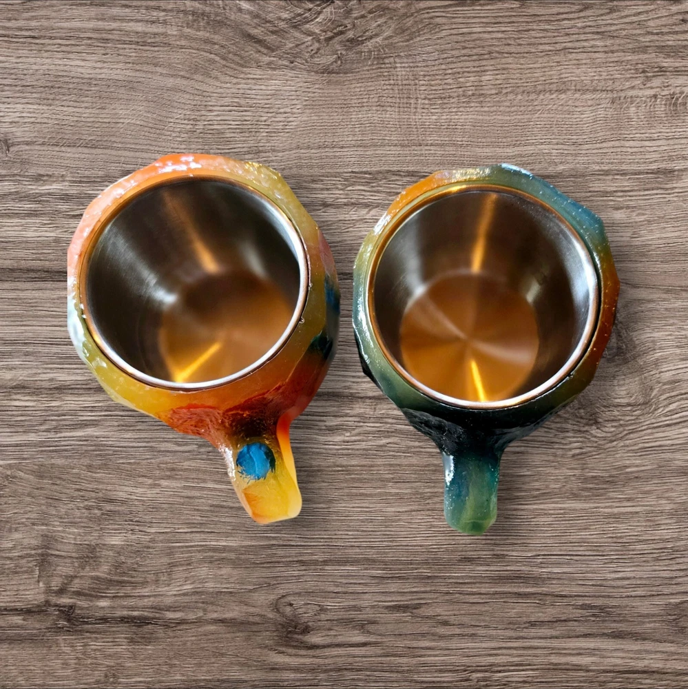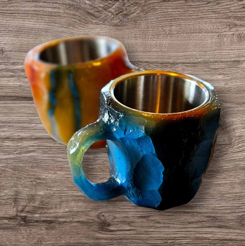 Upgrade your morning routine with this set of two Resin Mineral Crystal Coffee Mugs. Crafted with acrylic material, these mugs are designed to keep your hot beverages warm for a long time with its double-walled feature. The geometric pattern and art deco style make these mugs perfect for any occasion. Each mug has a capacity of 6.76 oz and features a comfortable handle for easy sipping. These mugs are also spill-proof and break/chip-resistant, making them perfect for everyday use. The multicolor design adds a pop of color to your kitchen collection. Give yourself a treat and add this stunning set of coffee mugs to your collection today!