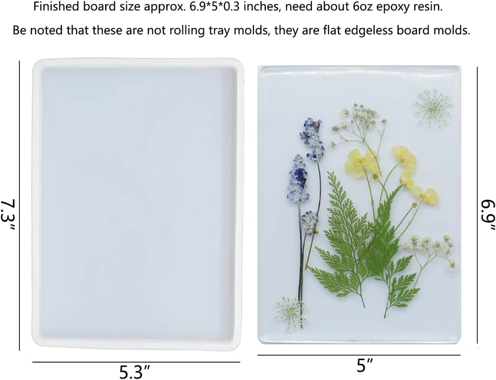 Store New Arrivals Add to Favorite View Feedback Contact Resin Tray Molds 2Pcs Flat Rectangle Silicone Molds for Resin Concrete Slab DIY Crafts, 6.9X5X0.3 Inch Description Item model number 2pcs rectangle Item dimensions L x W x H 7.3 x 5.3 x 0.4 inches Color white Brand LIBRAGOLD Material Silicone Item Weight 8.4 ounces Shape Rectangular Number of Pieces 2 Product Dimensions 7.3 x 5.3 x 0.4 inches Manufacturer LIBRAGOLD 【Flat Tray Molds】 Finished flat slab size approx. 6.9x5x0.3 Inch, need approx. 6oz epoxy resin. 【Rectangle Silicone Mold】Sturdy silicone to support resin/concrete weight without wall bulging outwards. 【Silicone Slab Molds】Smooth surface, easy to demold, clean and re-use. 【Personalized Gifts】Use with resin, concrete, cement, clay to make unique trays& boards to your friends and family. 【2pcs Rectangle Board Molds】Be noted that you will receive 2pcs rectangle silicone board & slab molds. Product Description Instructions for DIY resin flower trays Step 1: Pour the first resin layer and let the resin sit in the molds for a while. Step 2: Use tweezers to place pressed flowers onto the top of the resin. The flowers will stick to the resin, but should sit on top of the mixture. Step 3: Add a second layer of resin. Once the resin is cured, demold the trays from the molds. With these silicone tray molds, you can add some personality and uniqueness to your home with trays that are crafty, attractive and bursting with color. Use with resin, concrete to DIY your own styles. ABOUT US We offer the best prices around on high quality products. Our E-store includes media such as books, movies, music and games while offering electronics, toys, sporting apparel, clothing, tools, general home, garden items and more. SHIPPING We are always working hard to ensure your package arrives as soon as possible. Please understand that some factors like weather, high postal traffic, and the performance of shipping companies are outside of our control. We offer free shipping to the lower 48 states and ship within 2 business days of payment, usually sooner. We do not accept P.O. Boxes. Please provide a physical address. RETURNS We offer a 30-Day Return Policy on items which you are not completely satisfied with. You have the option for a full-refund or an exchange of the item. No returns are available on items shipped outside of the USA. PAYMENT We accept PayPal. CONTACT US This page content is yet to come Please ad us to your favorite seller and visit again later Thank You CUSTOMER SATISFACTION We try our very best to make sure every customer is completely satisfied. If there's a problem, message us! We're happy to help.