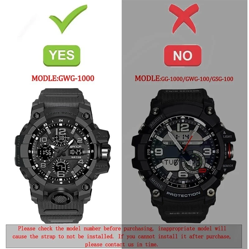 eBay Product Listing Resin Watch Band Men's Sports Waterproof Strap Wristband for GShock GWG1000 Specifications Clasp Type: Pin Buckle Band Length: 21cm Band Material Type: Rubber (Resin) Item Type: Watchbands Buckle Material: Fine Steel Key Features Rugged Resin Material: Built for durability, designed to withstand outdoor and sports activities. Comfortable Fit: Lightweight yet sturdy for long-term wear. Waterproof Design: Perfect for swimming, hiking, and other outdoor adventures. Secure Pin Buckle Closure: Ensures a snug fit with a fine steel buckle for enhanced durability. Notes Please allow 1-3cm error due to manual measurement. Colors may slightly vary due to different lighting conditions. Ensure accurate measurements before purchasing. Package Includes Selected Variation Explore More from Our Store Visit Store