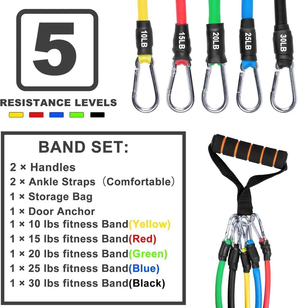 Product Dimensions: 47"L x 4.8"W Model Name: -exercise-resistance-bands-x1294 Type: Does not apply Number of Resistance Levels: 5 Brand: Does not apply UPC: 313047557568 Color: 10-100 LBS Assorted Item Package Dimensions L x W x H: 10.12 x 7.6 x 2.01 inches Recommended Uses For Product: Workout Tension Level: 10 pounds Warranty Description: 1-2 Special Feature: Adjustable, Lightweight, Portable Sport: Exercise and Fitness Material: Natural Rubber gtin13: 313047557568 Suggested Users: unisex-adult Included Components: Resistance Bands Set, Door Anchor, Handle Style: Resistance Bands Item Weight: 1.32 Pounds Unit Count: 12.0 Count Item Dimensions LxWxH: 47 x 4.8 x 3 inches Package Weight: 0.71 Kilograms