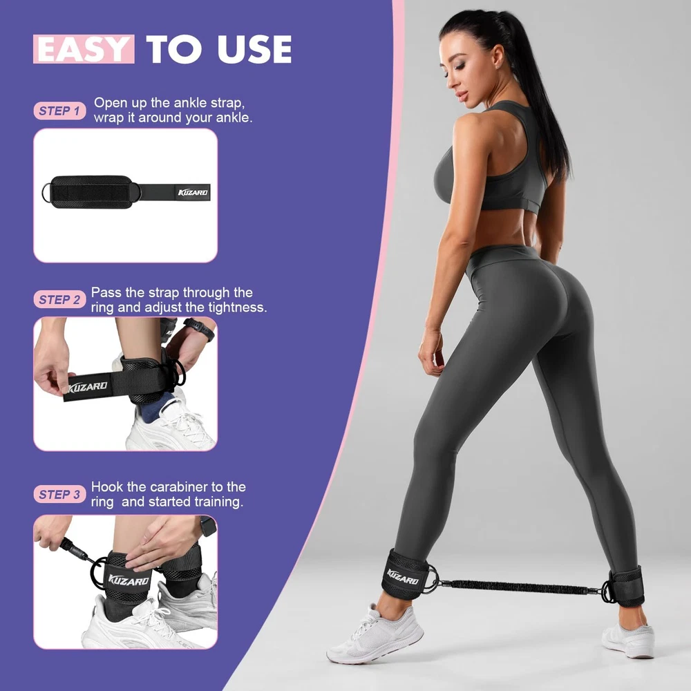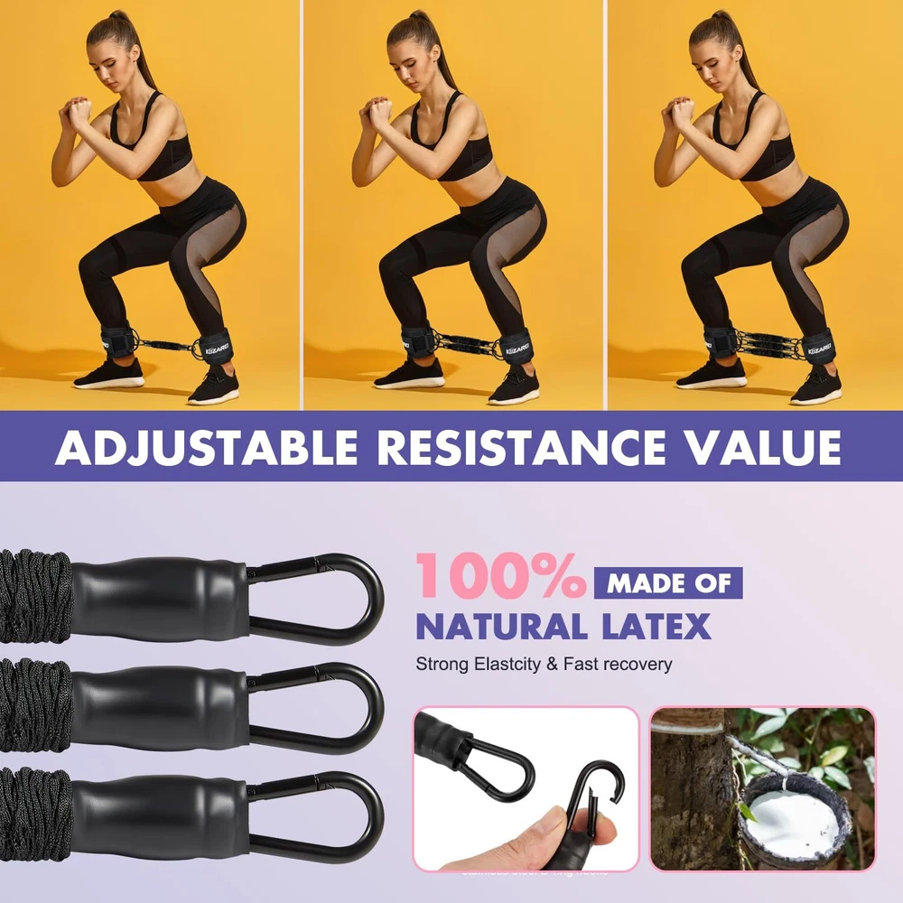 【VARIED RESISTANCE LEVELS】With 3 different resistance levels (10 lbs, 20 lbs, and 30 lbs), our adjustable ankle resistance bands offer a wide range of options for every fitness level. Use them individually or combine them for a maximum resistance of up to 60 lbs. Achieve your fitness goals and turn heads at your next pool party with a bikini-ready body and ripped abs. 【VERSATILE TRAINING EQUIPMENT】Designed specifically for kickbacks, hip thrusts, and gluteus training exercises, our ankle resistance bands with cuffs provide a versatile solution for targeting various muscle groups, including the legs, buttocks, and hips. Take your workouts to the next level and sculpt a defined lower body. 【PREMIUM QUALITY MATERIALS】Crafted from high-grade natural rubber, our ankle resistance bands ensure durability and elasticity. The adjustable design system caters to beginners and fitness professionals alike, accommodating different body types. Rest assured that our bands will withstand intensive leg and hip training sessions. 【PORTABLE AND USER-FRIENDLY】Compact and lightweight, our ankle bands are perfect for on-the-go fitness enthusiasts. Whether you prefer to exercise at home, in the gym, or while traveling, these exercise bands are a convenient addition to your workout routine. Simply toss them into your bag and stay active wherever you are. 【MULTIPLE EXERCISE APPLICATIONS】Not only will our ankle resistance bands help you achieve a sculpted buttocks, but they will also strengthen your legs. Ideal for bodybuilding, fitness, running, basketball, soccer, tennis, and more, our ankle resistance bands with cuffs are perfect for athletes of all sports. Experience the benefits of our versatile training tool and enhance your athletic performance.