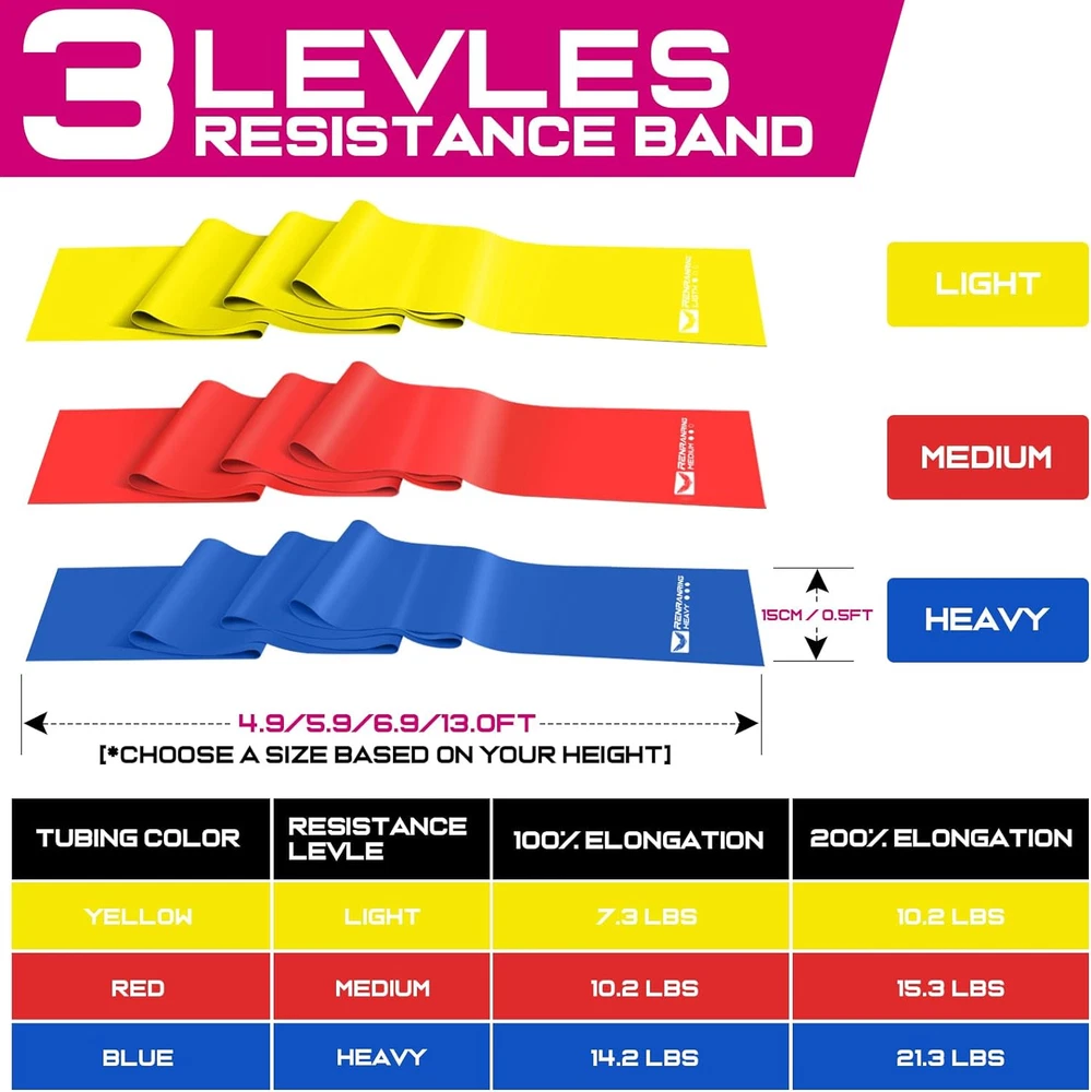 Size: 6.9FT UPC: 313025994903 Number of Resistance Levels: 3 Type: Does not apply Recommended Uses For Product: Physiotherapy, Workout, Stretching gtin13: 313025994903 Item Dimensions L x W: 82.6"L x 5.9"W Item Thickness: 0.01 Inches Additional Features: Anti-Break Brand: Does not apply Sport: Physiotherapy, Yoga, Exercise and Fitness, Pilates, Body Building Material: Thermoplastic Elastomer (TPE) Included Components: 1 Carry Bag, 1 Workout Guide, 3 Physical Therapy Bands Style Name: 6.9FT Resistance Bands Set for Physical Therapy, Stretch, Recover Color: 1-Yellow,Red,Blue Item Weight: 0.1 Pounds Material Type: Thermoplastic Elastomer (TPE) Sport Type: Physiotherapy, Yoga, Exercise and Fitness, Pilates, Body Building Model Name: 6.9ft Resistance Bands for Working Out Unit Count: 1 Count Tension Supported: Yellow 7.3~10.2 lbs, Red 10.2~15.3lbs, Blue 15.3~21.3 lbs.