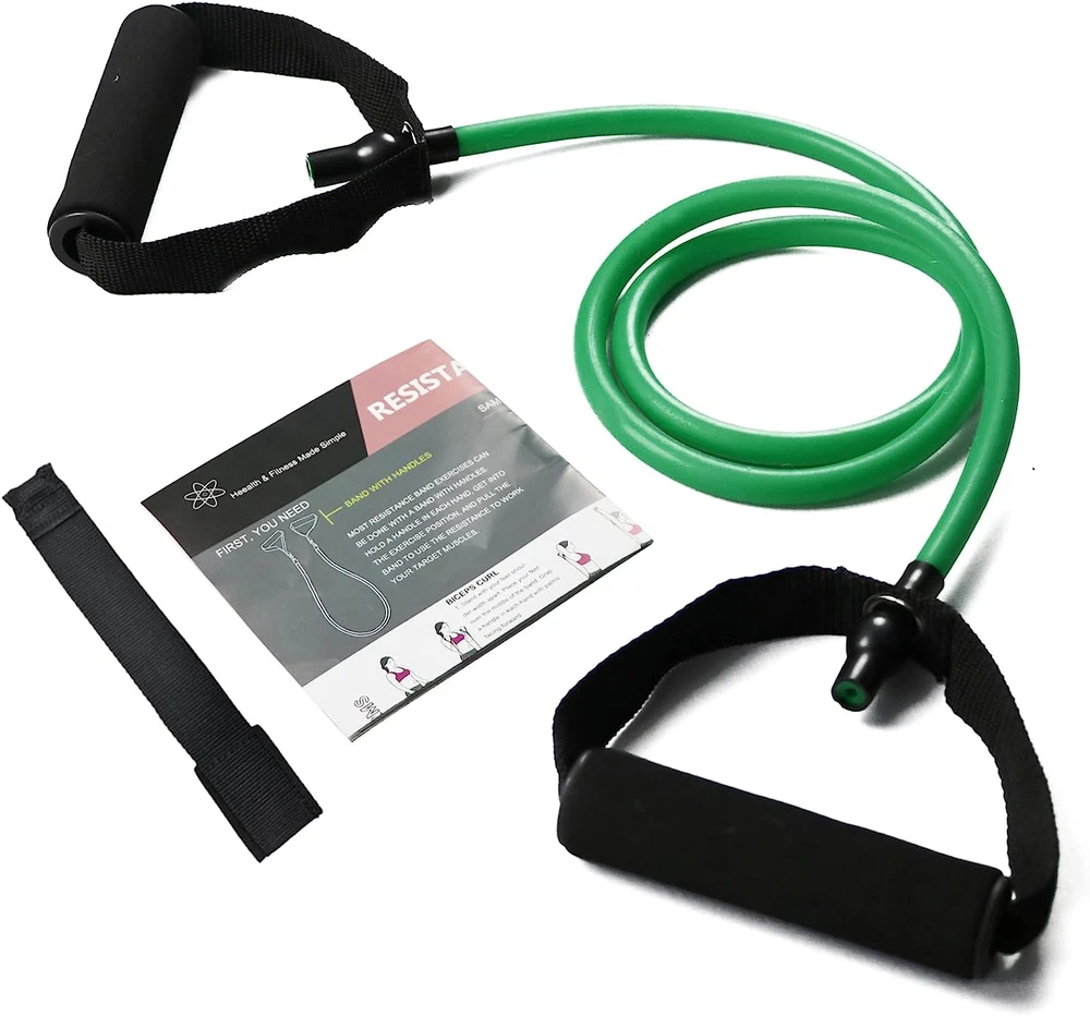 < ul >< li > Vary colors for various strengths : The Yellow resistance band provides 0 - 10lbs resistance , Red is between 10 - 20 lb , Green is between 20 - 30lbs , blue is 30 - 40lbs & black provides 40 - 50lbs resistance . < li > Total body workout : The resistance bands aren ’ t just to mend bodies as a low - impact tool to help absolve injury or pain , they ’ re now thought of as an important piece of gym equipment that help build muscle mass and stamina . You can use them to add resistance to your squats , bicep curls , or lunges — all without lifting a weighted barbell or heavy plate . < li > Good quality materials : Our Resistance band is made of natural latex and is kind to the environment . Strong wear resistance and great elasticity , non - slip handle , comfortable and absorbent . < li > Multifunction and portable : Our resistance bands can apply to different types of exercise . Good for toning your arms , shoulders , chest , glutes , legs etc . Also comes with a convenient pouch ! You can also take your bands to Gym , Office , etc . < li > Works for multiple workout scenarios : True resistance is maintained through every part of a motion . The resistance band set can be great with any popular workout like Yoga , Pilates and more . Or use them for general exercise , stretching , strength training , and power weight programs . < br >< div > < p > < span > 1