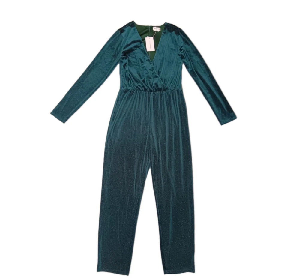 NWT Resloves Lovers and Friends Hart Jumpsuit Deep Emerald Green Size M Event . It does not come with the belt. Otherwise, it is in excellent condition. Please see the photos attached for details. The measurements are in the photos.