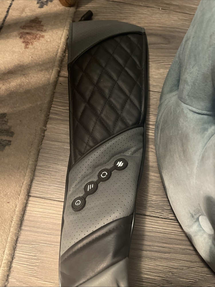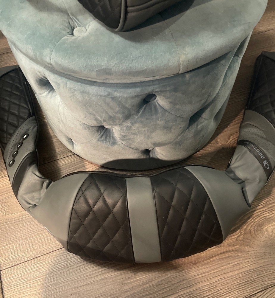 Labels & Certifications:Does Not ApplyColor:Gray and BlackModel:Shiatsu Neck and Back MassagerManufacturer Warranty:NoneType:Neck & Back MassagerCustom Bundle:NoBody Area:Back, NeckBrand:RESTECKPower Source:Corded ElectricMPN:Does Not ApplyCalifornia Prop 65 Warning:Does Not ApplyFeatures:Cordless, Heated, RechargeableMassage Functions:Kneading, ShiatsuCountry of Origin:ChinaEndurance Time:Does Not ApplyMaterial:PU LeatherVoltage:Does Not ApplyNumber of Massage Heads:2