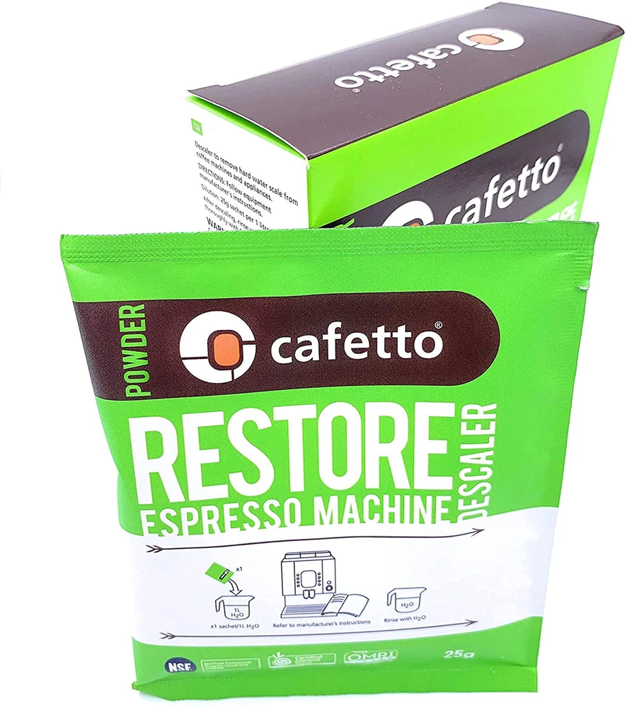 ORGANIC & NSF CERTIFIED - Restore Descaler is Safe, Non-, Phosphate And GMO Free! Restore Contains A Synergistic blend Of OMRI And BFA Certified Organic Food-Acids That Give Outstanding Scale And Lime Removal! 4 SINGLE USE PACKETS - Designed For The Descaling, Deliming, And Decalcifying Of All Of Your Espresso Machines, Single Use K Cup Machines, And Coffee Brewers! IMPROVED TASTE- Regular Descaling Improves The Taste Of Your Espresso And Coffee. Maintaing Your Machine Can Help Prevent Poor Performance And Machine Failure. CERTIFIED SAFE - The Ingredients And Formulation Of The Products That Are NSF Certified Are Safe, Leave No Harmful Residues And Do Not Cause Corrosion Within The Coffee Machine. Safe To Use On Aluminium, Brass And Stainless Steel. Restore Is Rapidly Biodegradable And Safe For The Environment! WORRY FREE BUYING - If You Are Not Satisfied With Our Product Please Let Us Know. We Are 100% Committed To Complete Customer Satisfaction!