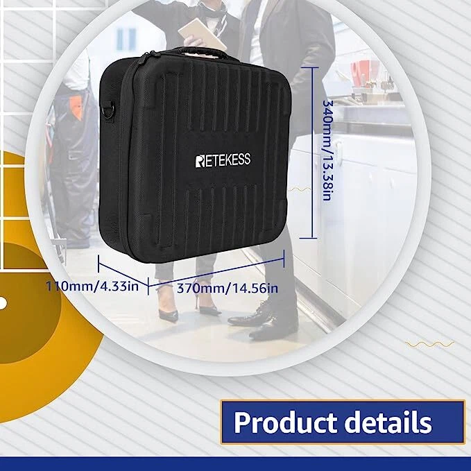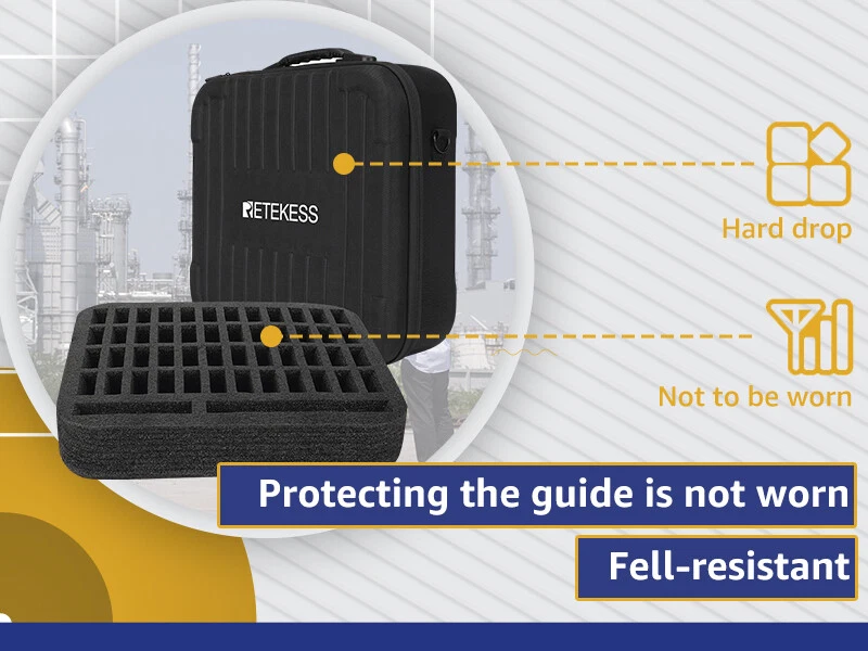无标题文档 Shipping Service:Priority DHL Express Service when items ship from China.(2-7 business days) TT109 2.4GHz Professional Wireless Tour Guide System for Traveling Museum Visit Conference Features: 2.4GHz signal transmission with stable audio quality ONE-Way communication: ONLY allowing ONE speaking One-key Receivers channel synchronization function saves much time 150 meters communication distance in the open air 50 channels to choose, up to 50 groups tour at the same location Built-in rechargeable lithium battery, long battery life Pocket size and light weight, easy to use Specification: Transmitter Frequency range 2400-2480MHz Channel 50 channels Output power 10mW Power supply Built-in 1500mAh lithium battery Working time About 8 hours Working distance 180 meters (open air) Size 86 x 50 x 19mm Weight 60g Receiver Frequency range 2400-2480MHz Channel 50 channels Power supply Built-in 1000mAh lithium battery Working time About 18 hours Size 86 x 50 x 19mm Weight 51g Retekess TT016 Tour Guide System 48 Slot Storage Bag for TT122 TT105 TT109 Black Features: Portable 48 slot handbag; 48 receivers and transmitters can be installed; and corresponding accessories; store neatly to avoid bumping Durable materials; storage bag is made of nylon cloth wrapped with EVA; easy to clean; not easy to be scratched; the internal sponge protective layer can be removed Portable design;2 modes of carrying; the storage bag has handle; equipped with shoulder strap; which is more convenient to travel Good compatibility; compatible with Retekess TT105/TT122 wireless tour guide system; fix and protect the product well Built in sponge protective layer; good resilience; not easy to deform; effectively protect the receiver and transmitter Specification: Material: Nylon cloth wrapped with EVA Net weight:1.1kg Size:370mm*340mm*110mm Package Includes: 2 x Transmitter 30 x Receiver 2 x Microphone 30 x Single earphone 31 x Charging cable 31 x Lanyard 1 x Storage package 1 x English manual We Make Distance Communication Easy: TT109 tour guide system is widely used in group activities such as tour guides, church activities, factory tour explanations, horse riding teaching; With long standby time, long working distance, 50 channels; 1 transmitter can work with countless receivers, one-key pair frequency operation makes the process easier and more convenient; Note: The transmitter of the TT109 tour guide can only be used with the receiver of the TT109 1. 150 meters communication distance in the open air 2. TT109 can receive and match all receiver channels with one key, the synchronization function saves a lot of time and is convenient for time efficiency 3.The same location allows multiple teams to independently visit and explain without interference. 4. TT109 has 2.4GHz signal transmission, clear and stable sound quality 5. Built-in 1500mAh rechargeable lithium battery, long battery life 6. 50 channels to choose from, and up to 50 group tours in the same place High capacity TT016 storage bag has 48 holes, which can accommodate 48 guide systems; Convenient for product storage and carrying. Drop resistant Strong and durable Nylon material,, can protect the guide system from wear. Bring convenience Equipped with shoulder strap and lane rope, you can carry or mention it with multiple choices, making work more convenient. About Us