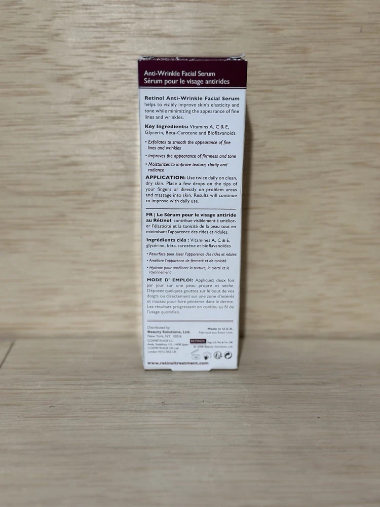 Retinol Anti-Wrinkle Facial Serum Vitamines A, C + E Enriched 1fl.oz