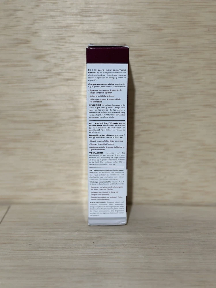 Skin Type: All Skin Types Brand: Retinol Formulation: Serum Product Line: Retinol Serum Size: Regular Volume: 1 fl oz Department: Unisex Type: Serum gtin13: 088634565119 UPC: 088634565119 Body Area: Face Ingredients: Glycerin, Beta-Carotene, Bioflavanoids, Vitamin A,C & E Main Purpose: Age-Defying, Firming, Lifting, Wrinkles Country/Region of Manufacture: United States Features: Contains Retinol Period After Opening (PAO): 12M