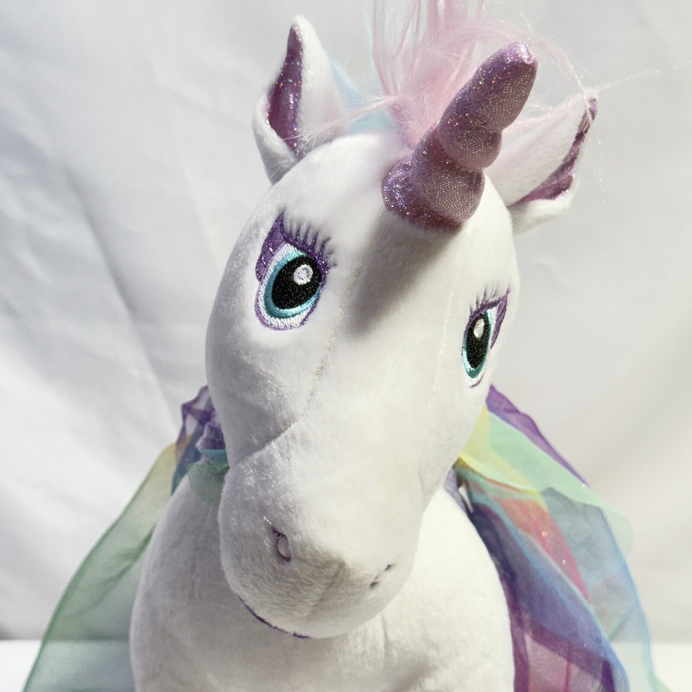 This retired Build-A-Bear plush doll is a must-have for any My Little Pony fan. The 17-inch white unicorn boasts beautiful blue eyes and comes dressed in clothing and accessories. This original, licenced reproduction from the 2010-2019 collection is in excellent condition and is the perfect addition to any collection. The doll is made of high-quality plush material and features intricate details, such as the unicorn horn and wings. This single unit doll weighs 1 pound and is perfect for display or play. Add this magical Build-A-Bear Workshop My Little Pony plush doll to your collection today! Note: Sound does not work