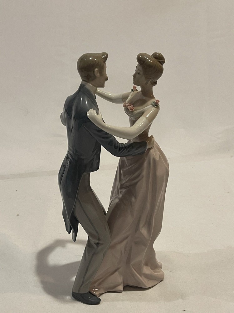 Crafted with meticulous attention to detail, this Retired Lladró "Anniversary Waltz" #1372 figurine is a testament to the timeless art of porcelain. The piece is a lovely representation of the brand's commitment to quality and beauty, making it a valuable addition to any collection. The figurine comes in its original box. With its delicate features and elegant pose, it captures the essence of Lladró's signature style, perfect for collectors and enthusiasts alike. Includes original box marked with factory-style production amount 7/1743 R. on the exterior. Figurine remains pristine, never displayed.
