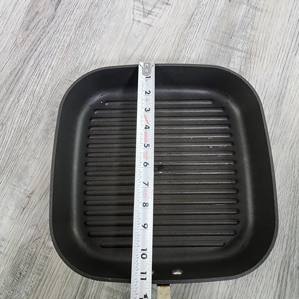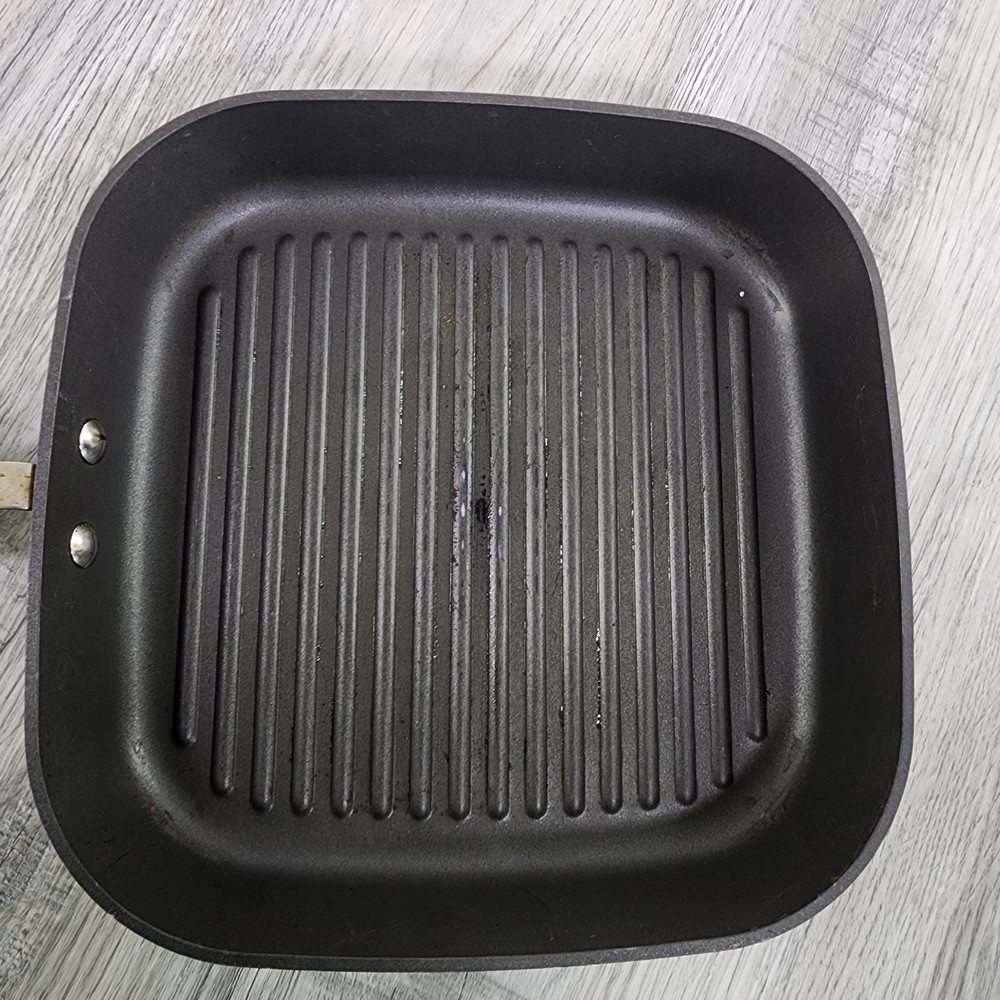 Retired Pampered Chef 11" Non-Stick Square Grill Pan & Press Griddle Panini. In used condition please see pictures for details.