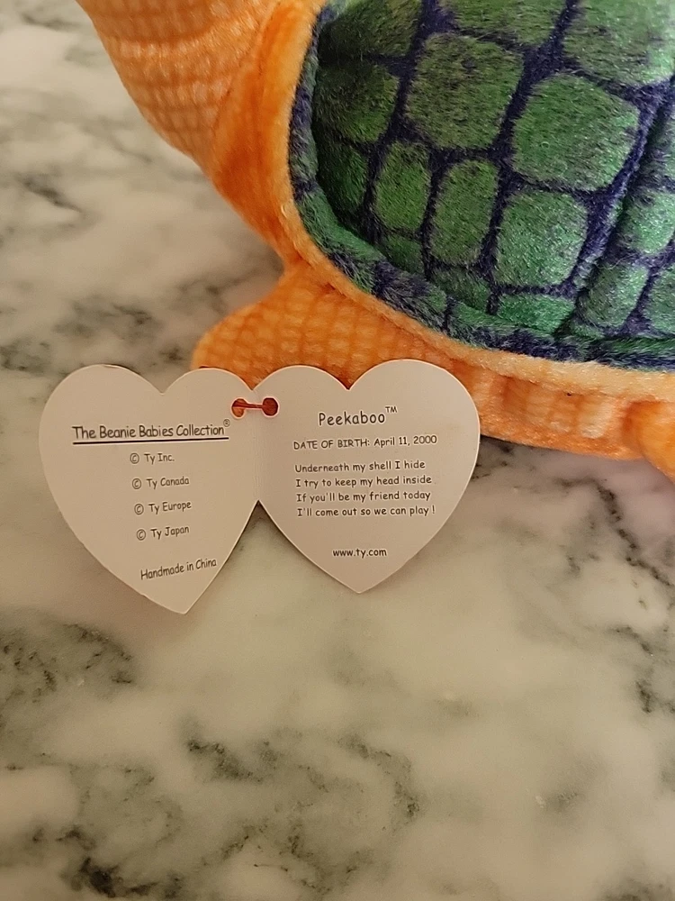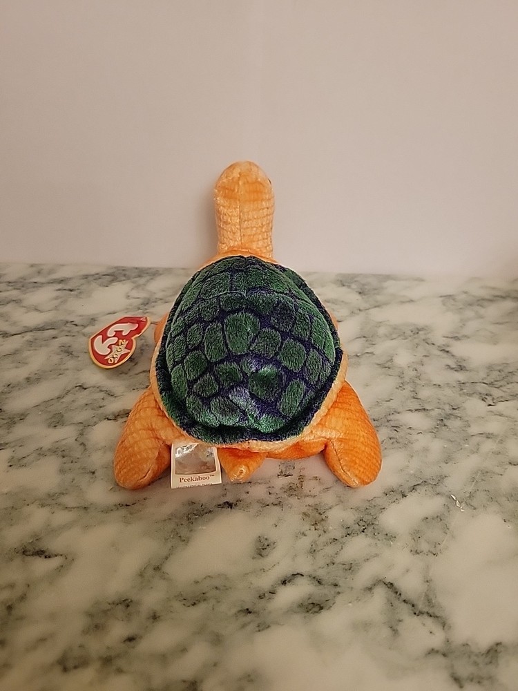 The Ty Beanie Baby Peekaboo Turtle Plush is a retired collectible from 2000 with its original tag. Made by Ty, this plush toy is part of the Ty Beanie Baby character family and is suitable for ages 3 and up. Perfect for young children and collectors alike, this China-manufactured stuffed turtle is a nostalgic piece that is sure to bring joy to any Beanie Baby enthusiast. pet and smoke free house brand new condition Tags still intact no rips or Staining