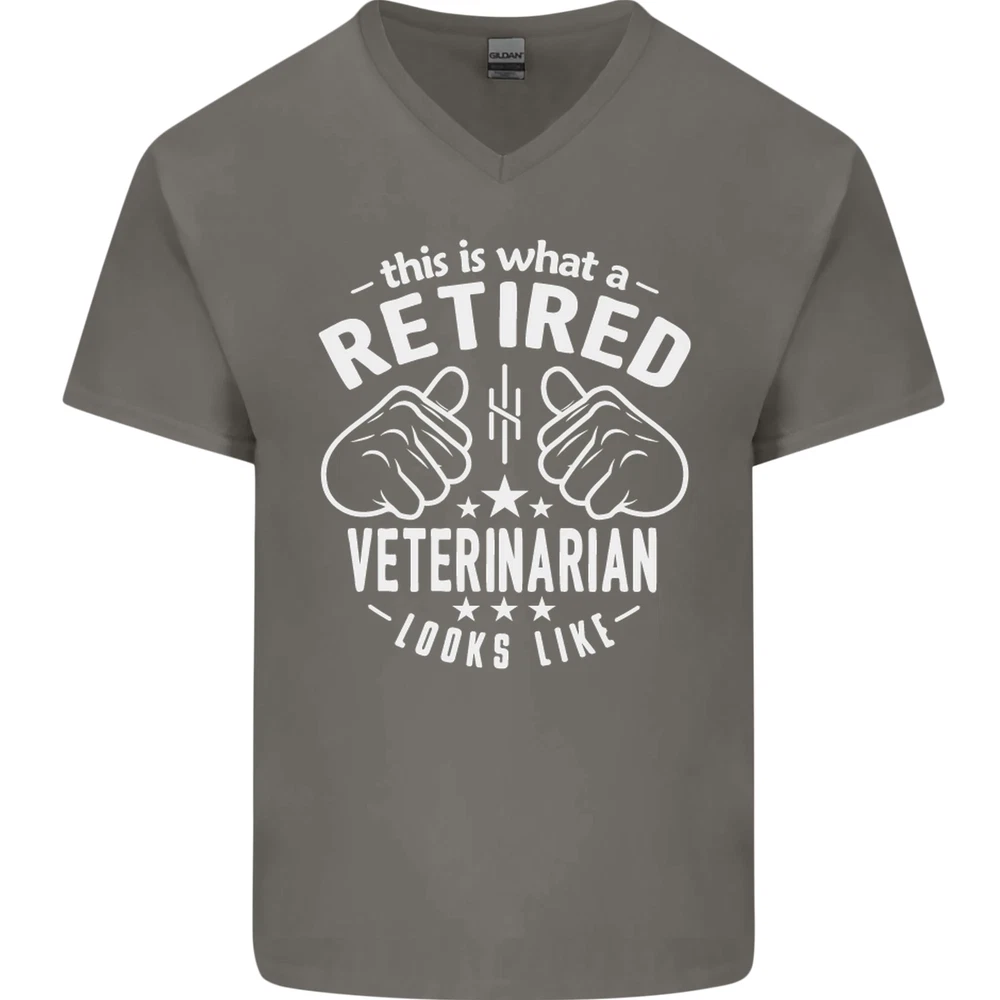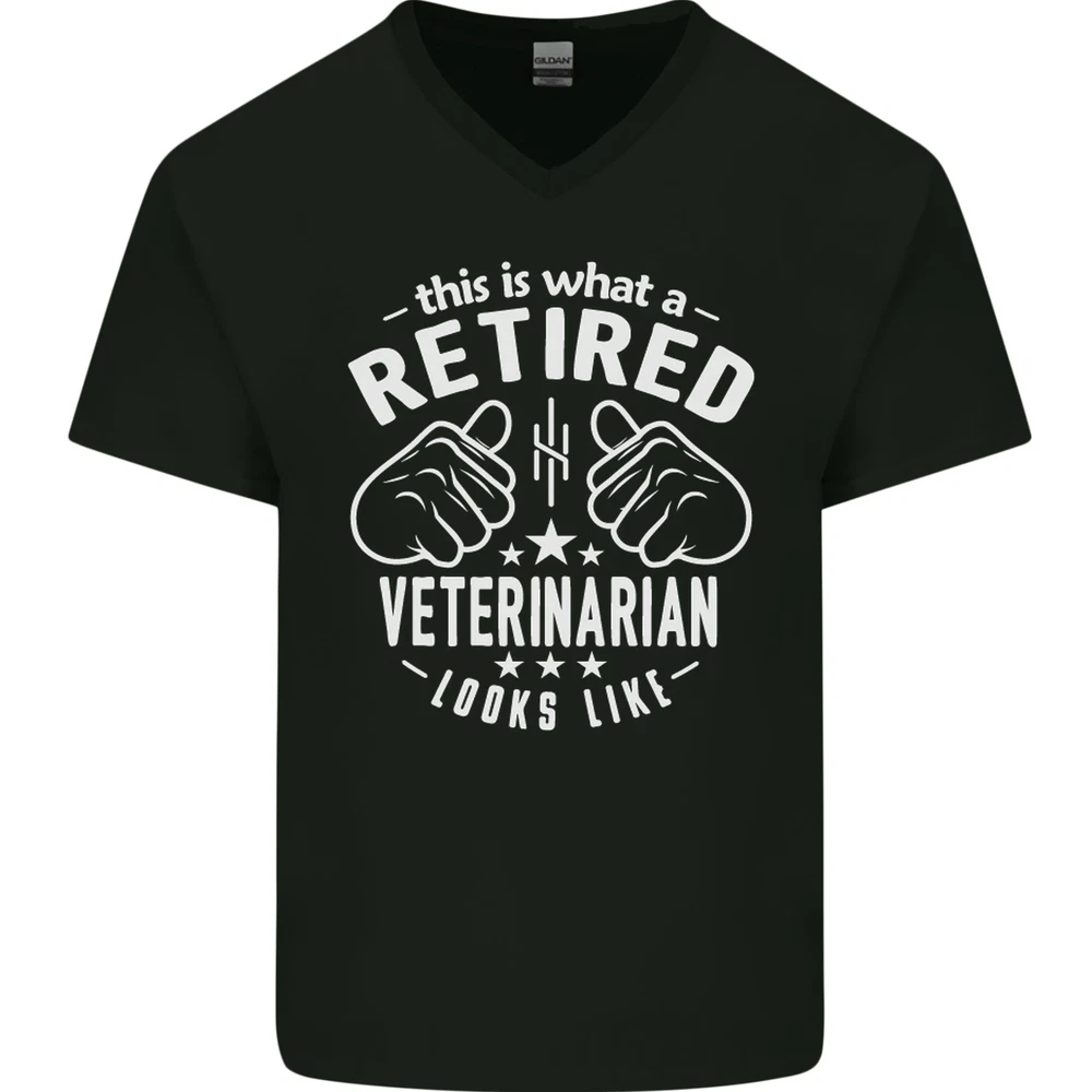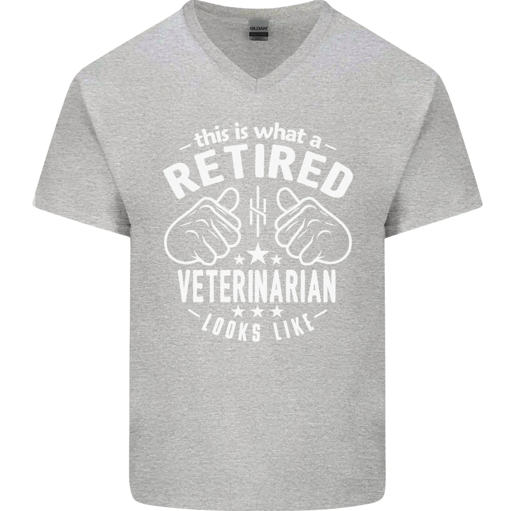 Retired Veterinarian Graphic Mens V-Neck Cotton Tee