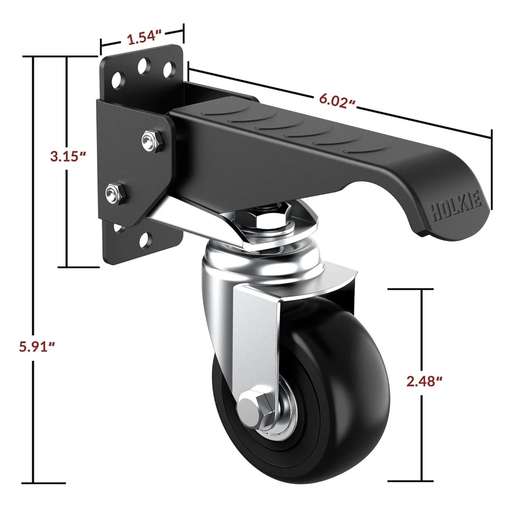 Retractable Casters Heavy Duty Casters with Lifting and Lowering Function EASY TO OPERATE: The retractable caster is different from ordinary casters in that it is side-mounted. It is very easy to use, just put your foot on the pedal and step down to lift it while operating, then if you lower the workbench, you just need to lift the pedal. The item comes with instructions and installation template. IMPROVED MATERIALS: Workbench casters are constructed of durable solid steel and high quality PVC casters. Brackets have thicker steel and stronger screws. Maximum load capacity is 700LBS (4 casters) MOBILITY and STABILITY: Retractable casters provide both mobility and stability. They can easily move workbench or equipment when needed, and then lower it to lock it firmly for stability, making it a versatile castor for a variety of applications. VERSATILE APPLICATIONS: These casters are used in a wide range of applications, including furniture, workbenches and other equipment, where the ability to switch between mobility and stability is essential. Shipping We offer FREE shipping on all orders! We ship within Three business days of payment, usually sooner. We use a selection of shipping services such as UPS, FedEx, USPS etc. We only ship to the lower 48 states, no APO/FPO addresses or PO Boxes allowed. Local pickups and combined shipping options are not provided at this time. Return You can return a product for up to 30 days from the date you purchased it. Any product you return must be in the same condition you received it and in the original packaging. Please keep the receipt. Payment We accept payment by any of the following methods: PayPal Please pay as soon as possible after winning an auction, as that will allow us to post your item to you sooner! Feedback Customer satisfaction is very important to us. If you have any problem with your order, please contact us and we will do our best to make you satisfied. Contact Us If you have any queries, please contact us via ebay. We usually respond within 24 hours on weekdays. Please visit our eBay store to check out other items for sale! Thank you for shopping at our store.