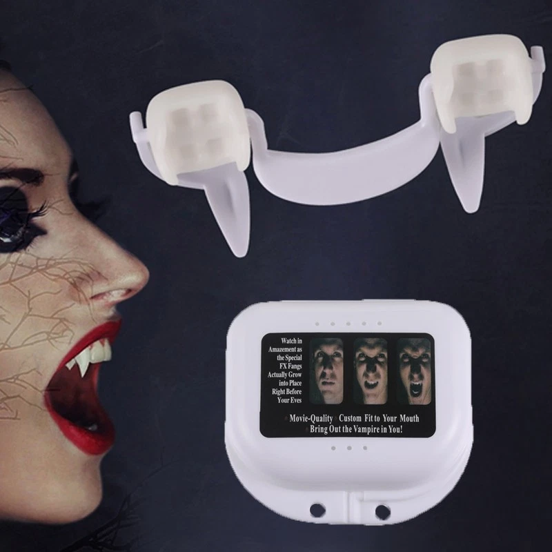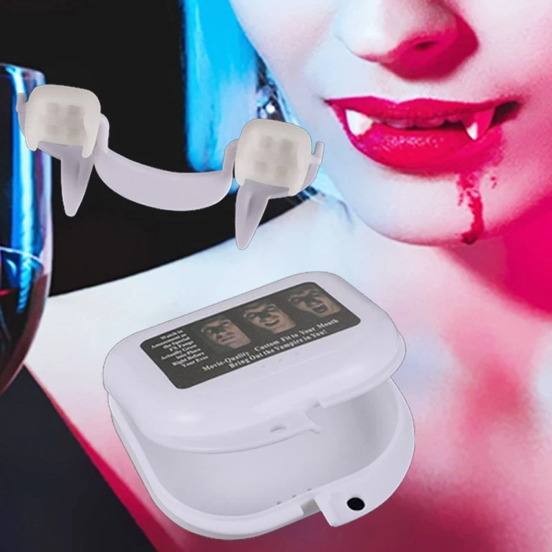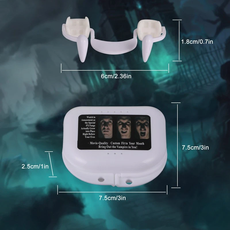 Retractable Vampire Teeth Fangs Halloween Cosplay Makeup Zombie Dentures Teeth Feature: -Realistic look:Fit your teeth very well. -Easy storage:Come with a separate box .The fake teeth can be reused. -Good quality:Made of tough polymer resin , non toxic, safe , tasteless and environmentally friendly.And the surface is smooth which is friendly to your teeth. - Use for:For Halloween vampire or werewolf role-playing parties, all kinds carnival parties, How to use: Step 1:It is recommended to rinse with warm water before use. Step 2:Take it out and install it directly on the teeth without gel. Step 3:You can create a vampire look when you show your teeth. Specification: Color: white Material: plastic and silicone Size:6*1.8cm/2.36*0.7inch Box size:7.5*7.5*2.5cm/3*3*2.5inch Package including: 1*Fake Vampire Teeth 1*Storage box Payment Delivery details Terms of sales About us Contact us Payment Payments: Paypal, Google Pay, Visa, Master Card, Amerian Express, Discover. Delivery details All items are shipped from US warehouse. 😉😉 😉 We have 2 wharehouse in US, one is in NJ and the other is in CA. 😉😉 😉 We will ship from the warehouse closest to the buyer's delivery address. Don't hesitate make orders ! We ship to your eBay or Paypal address. Please make sure your eBay or Paypal address is correct before you pay. Terms of sales Free return About us Pls contact our customer service firstly if have any problems , we will help to solve the issue, and could offer free return service for full refund or free replacement after confirming. You can buy from us with confidence Contact us If have any problems, please feel free to contact us.