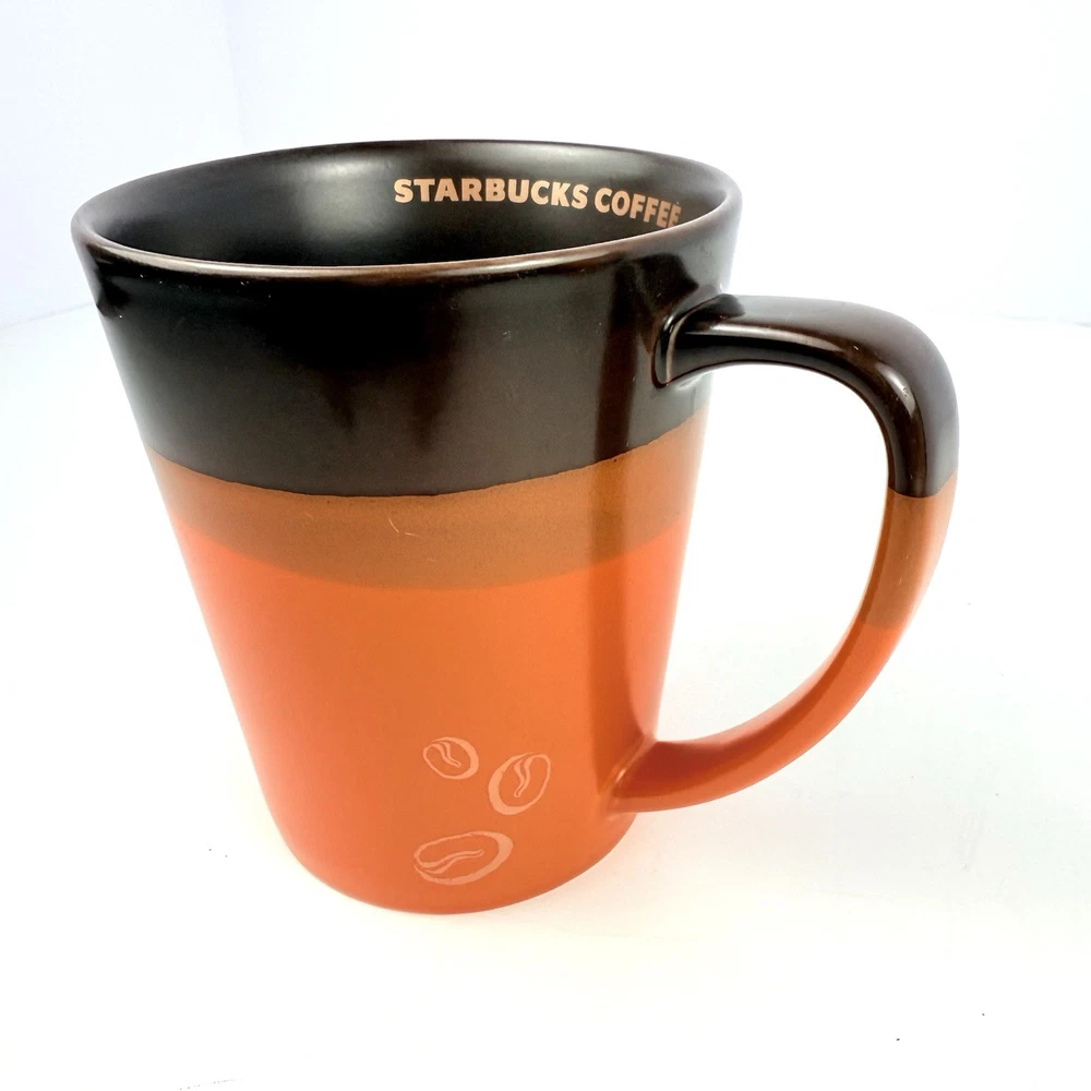 12oz like new coffee mug. Brown and orange with Starbucks written on the inside and coffee beans on the outside. Rare mug. Let me know if you have any questions. Blessings to you! 🤎🧡💛💛🧡🤎